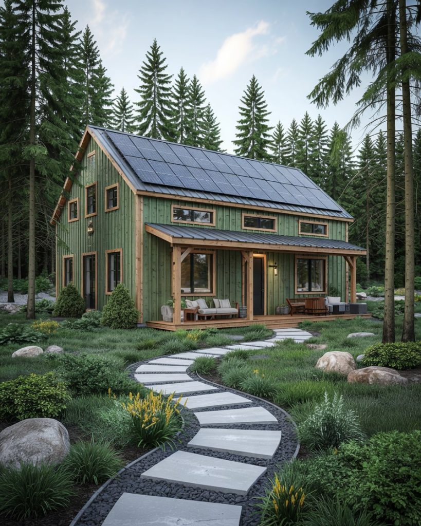 Environmentally friendly design combines beauty with functionality. Incorporating solar panels, reclaimed materials, and energy-efficient appliances within modern-designed interiors helps in cost saving and smart, eco-friendly living. Exterior shades of soft green or stone gray appear less disruptive and blend with the environment. Incorporating features like rainwater collection and natural insulation will enhance simple living.