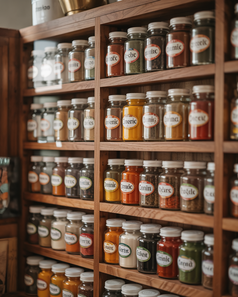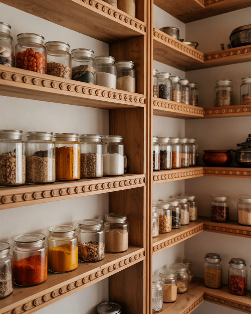 For Indian cooking lovers, a spice cabinet deserves special attention. Use glass jars and tiered shelves to showcase vibrant colors and aromas. Keep everything labeled and grouped for quick meals. This not only saves time but also brings beauty and culture into your kitchen—a touch of global design that feels warm and inspiring.