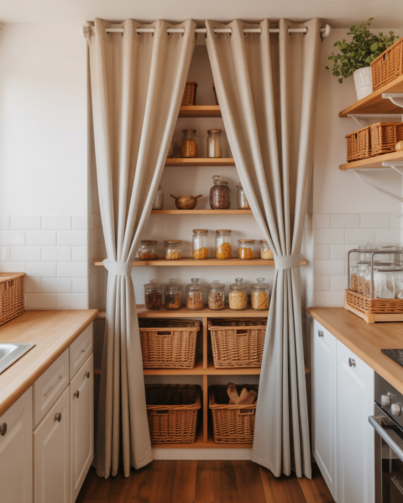 15. Hidden Pantry Behind Curtains