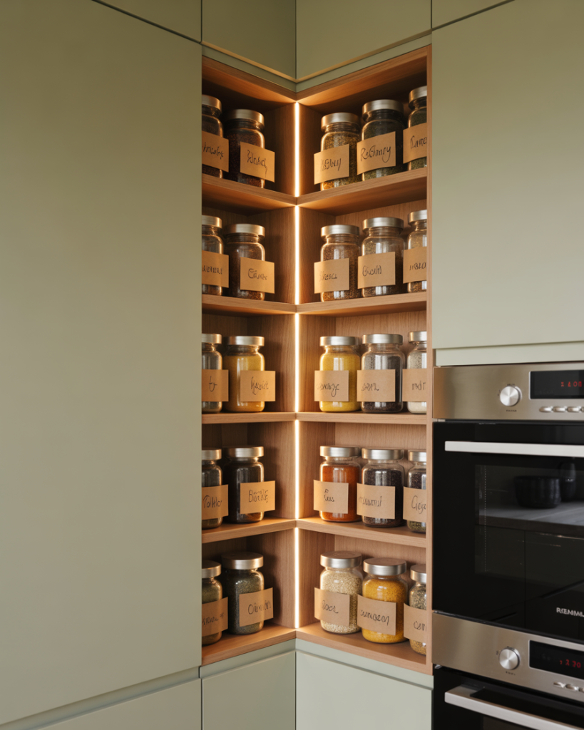 Corners are tricky but valuable. A dedicated corner pantry cabinet creates very efficient layout storage, often with rotating or angled shelves. Designers praise this solution in tiny kitchens, where unused angles otherwise go to waste. It can feel like a mini walk in tucked into an awkward spot, and some Ikea solutions make this look easy to install on a budget.