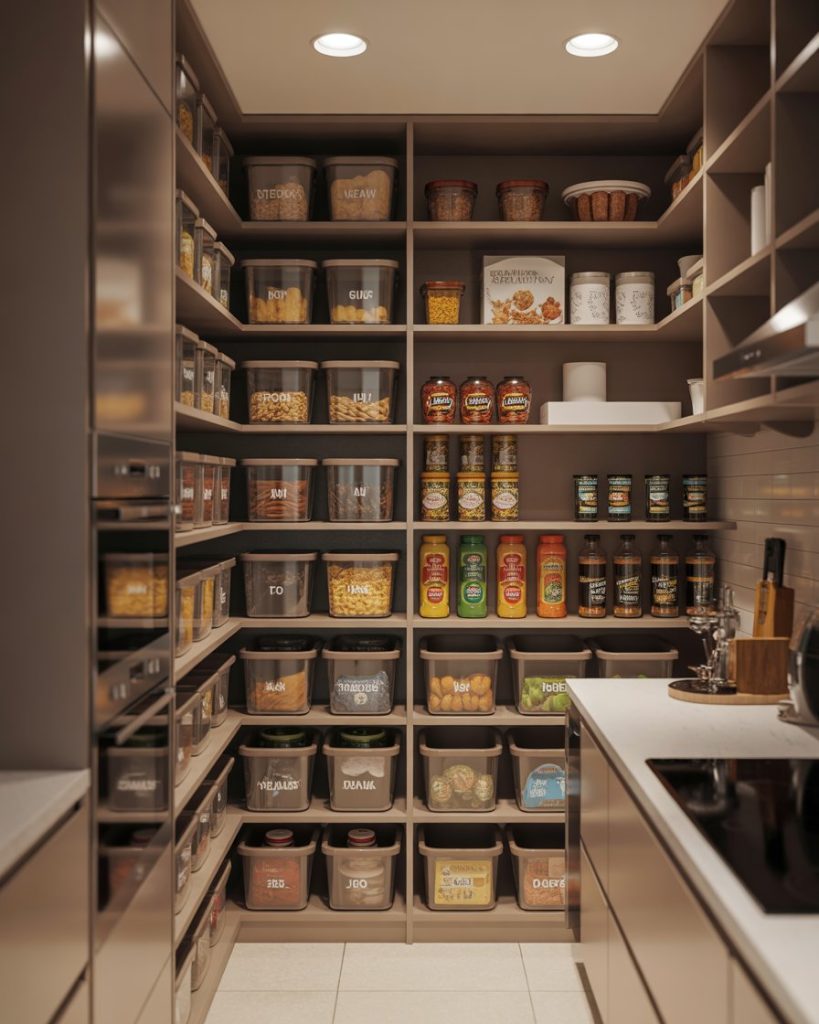 Modern pantries often divide storage into zones: snacks, baking, beverages, or cleaning supplies. This layout storage idea makes it easy to find things quickly, and it works in tiny kitchens, closet setups, or small walk in areas. Designers suggest labels and bins to make it visually clear. I’ve seen this system used in a home office as well, with one zone for coffee and another for healthy snacks.
