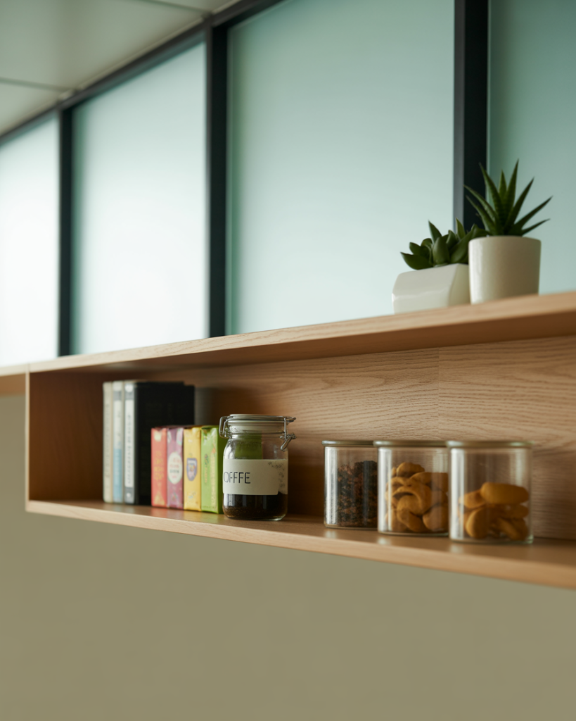 Remote workers often benefit from adding a pantry corner in the office. While not a full kitchen, a small shelf with snacks, teas, and a coffee station makes the workday smoother. Many home design blogs suggest this as a way to add comfort and efficiency. The layout storage should be sleek to blend with professional decor, and I’ve found it helps keep me focused without constant trips to the kitchen.