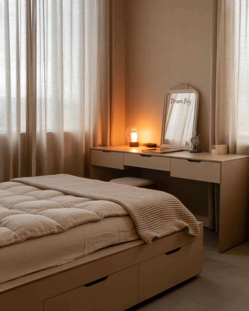 A mini bedroom can never be a constraint; it is a canvas. Cozy, boho-chic, or modern-minimal–the right solution turns your space into something truly personal and practical. I want to know which style intrigues you so much that you would pursue it; comment below and mention some of your own small-space hacks!