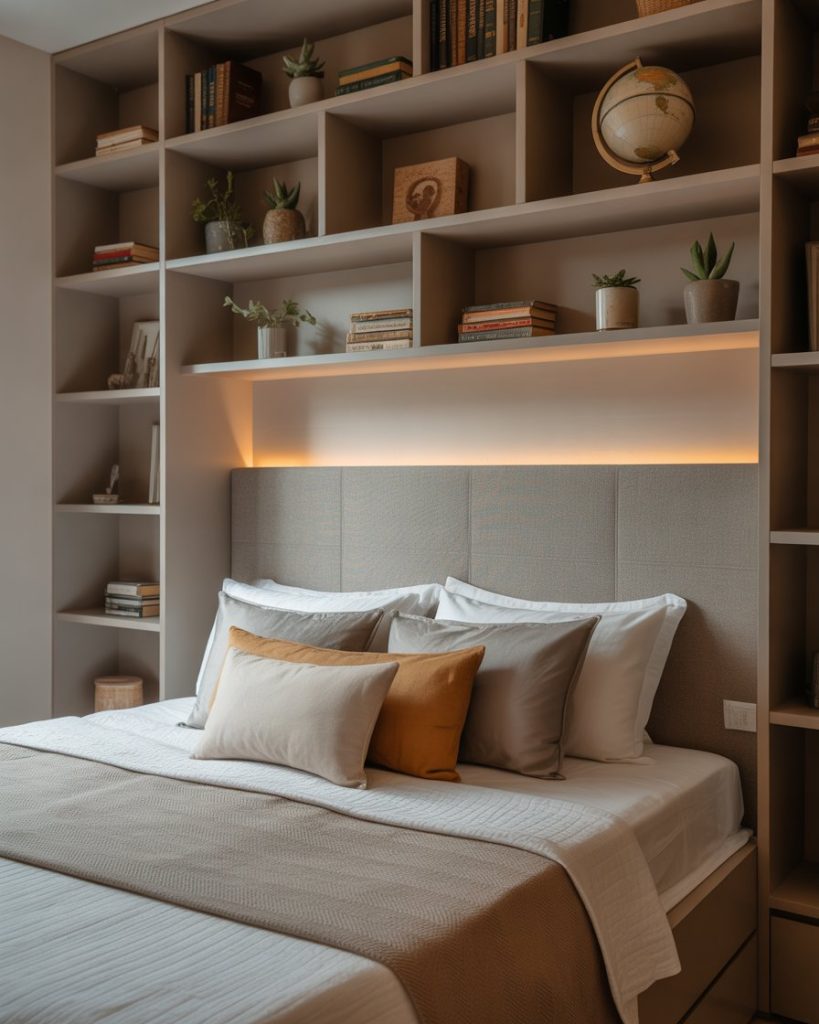 If wardrobes feel too bulky, choose a worker with storage. This organizing space-saving trick is a budget decorator’s favorite. Place books, night essentials, or small plants above your cozy single bed to create more floor space. According to Design Milk, smart headboards make a huge statement without clutter, thus converting functionality into an aspect of style.