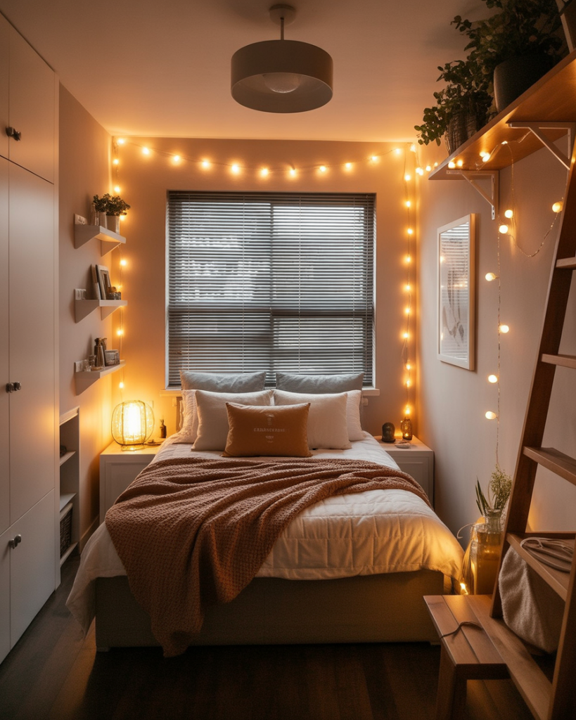 Lighting changes everything in a compact room. From string lights to wall-mounted sconces, smart setups can create a cheap cozy mood without huge investments. DIY LED strips under shelves or under bed frames are well-liked among teenagers and offer a contemporary vibe. According to Houzz, layering light sources provides dimension to spaces that have no size to work with.