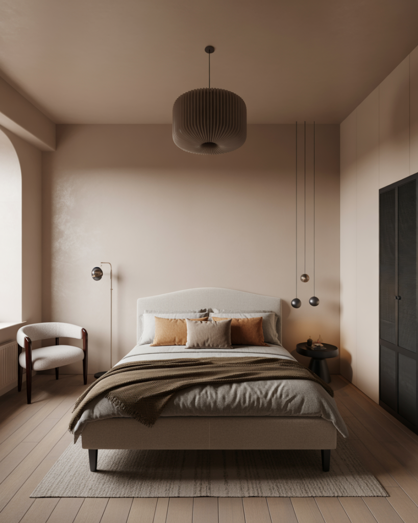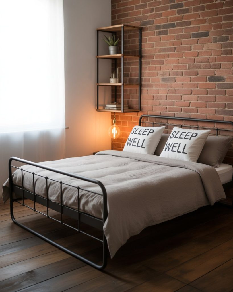 The Industrial-style look combines an exposed brick wallpaper with metal shelving and a lot of reclaimed wood to be edgy yet cozy in a small bedroom. This style is ideally suited for a typical urban apartment setting in which the raw finishes feel pretty genuine. Design professionals on Dezeen further note that that blending of hard surfaces with soft cozy things like throws or rugs really balances the functionality and warmth of a room while giving it a grounded personality.