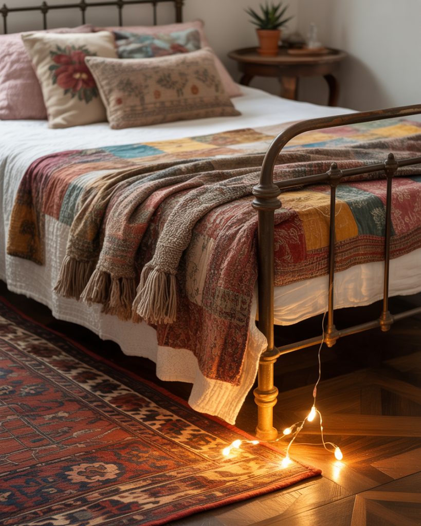 Layering of textiles is the heart of Bohemian style and also helps set the mood in smaller rooms. Mix-patterned rugs, throws, and cushions for a cozy hideaway. The look is really for teenagers or willful souls who desire uniqueness. Justina Blakeney observes that layering produces “visual abundance,” which accounts for why even tiny bedrooms can feel so big when boldly presented.