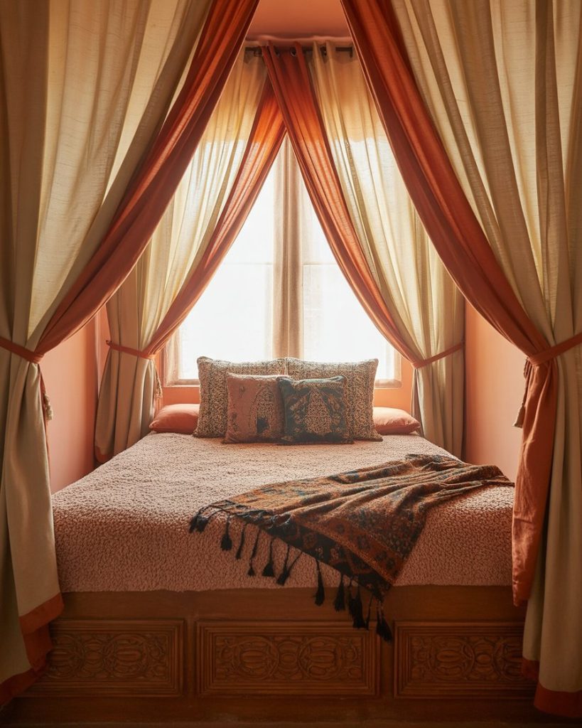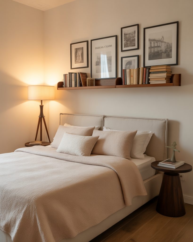 In limited spaces, a snug single bed will become the central focus. You can create a nook against the wall surrounded by layered blankets and accent lighting from sconces, with floating shelves on either side. This kind of design goes well in Indian apartments, where the floor area has to be maximized. As highlighted by DesignSponge, single beds, when given their worthy touch of cozy decor, can feel downright luxurious.