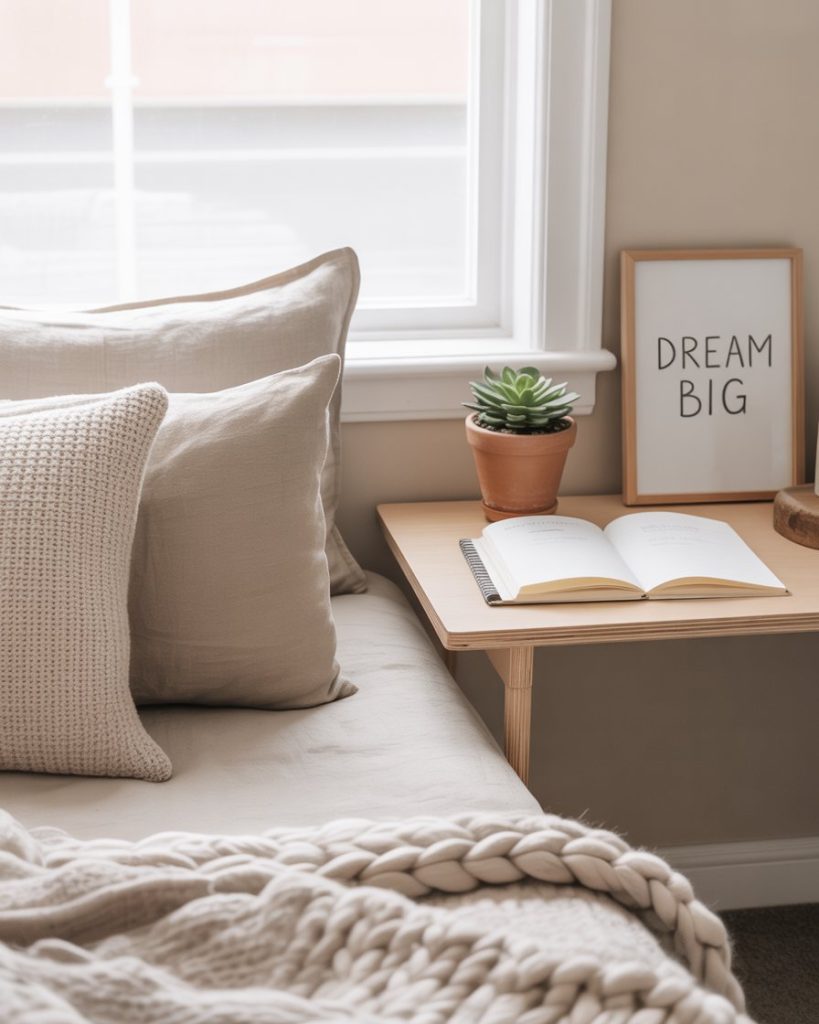 Sometimes less is more, and a neutral palette of beige, cream, or soft gray can make a tiny room feel expansive. Layering different textures such as knit throws, linen curtains, and jute rugs keeps the look warm and inviting without becoming boring. Great for those people who share spaces and love simplicity and peace. Designers at Apartment Therapy often argue that neutrals are eternal in design.