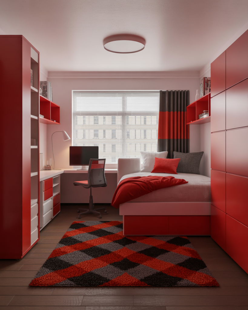 Keeping the momentum going during long study nights might just mean having those red accents around. A scarlet rug, cherry throw pillow, or a crimson lamp saturates the smallest shared dorm with vital energy. Promoting red as a stimulant, HGTV designers contend it is especially suitable for college students who need to ignite creativity and focus. Work this color openhandedly with black and white for some bold contrast.