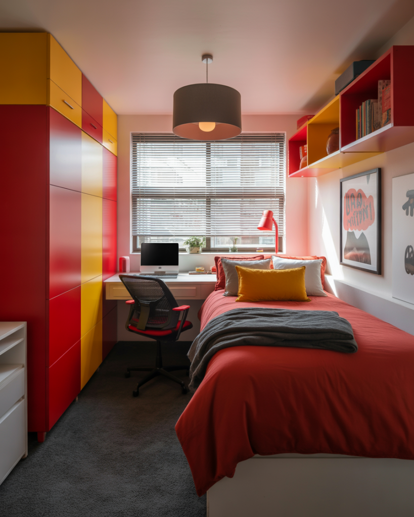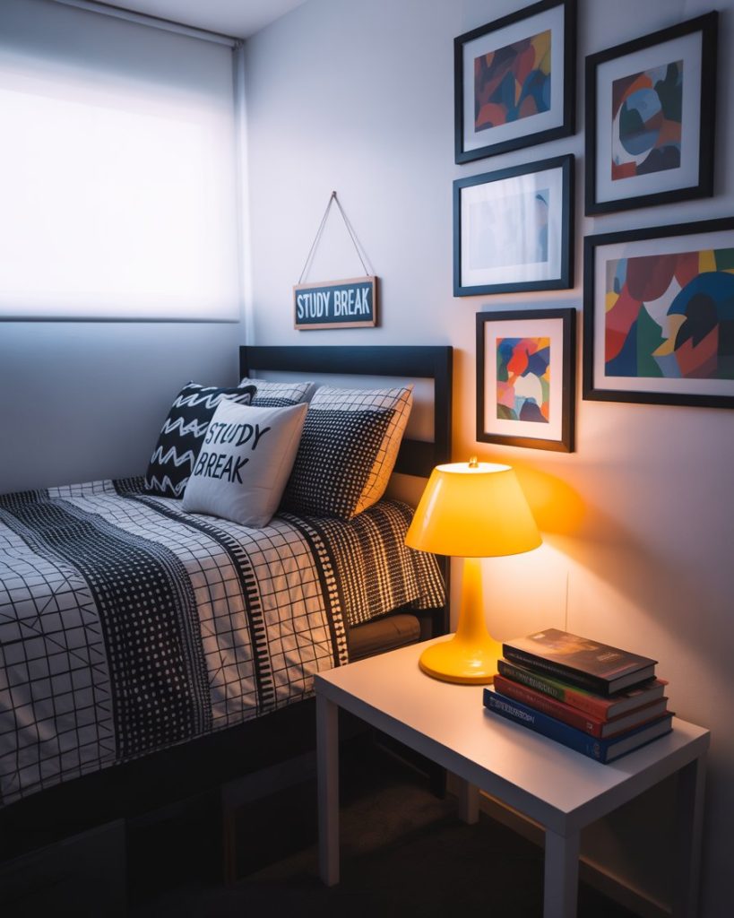 For an upbeat vibe, red and yellow accents can be considered unparalleled. A crimson throw or perhaps a cheerful desk lamp turns a bare dorm room into a vibrant shelter. Nature of these colors is to stimulate ideas, thus being suitable for students who flourish in active and vibrant spaces. HGTV interior decoration experts frequently mention how black-and-white raises the energy in small spaces.