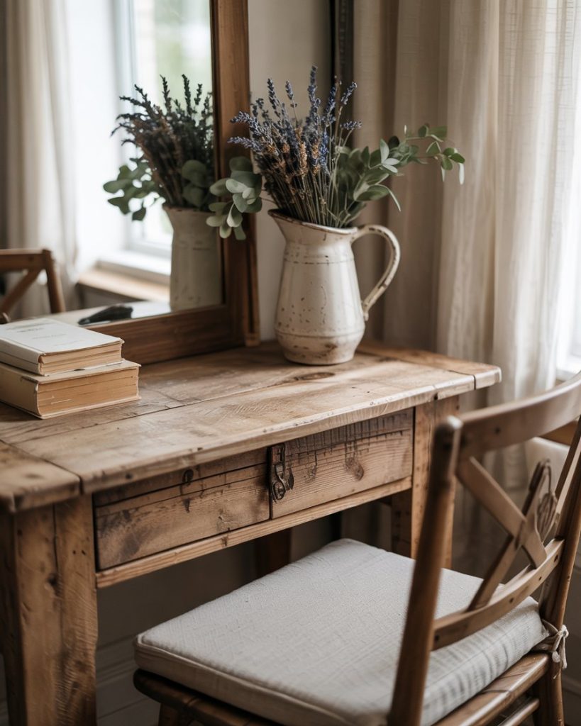 19. Rustic Farmhouse Vanity with Wood and Linen