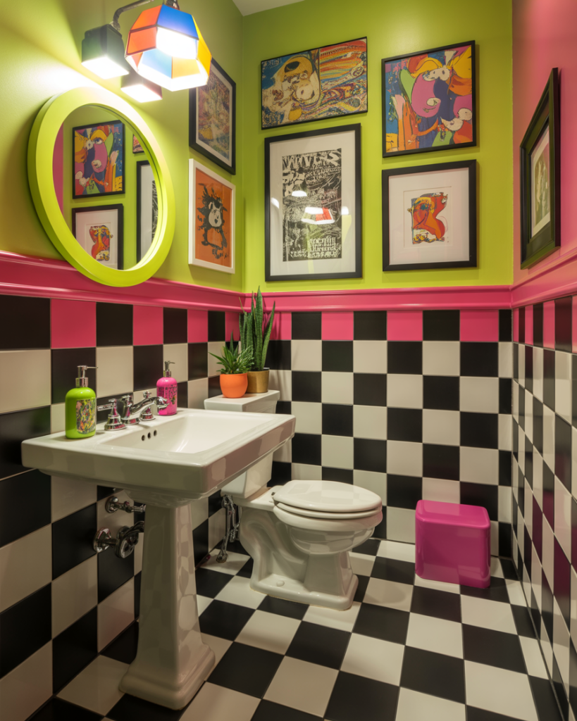 A half bath is the best spot to go fun and funky—checkerboard tile, quirky art, or a citrus-colored ceiling all work here. I once saw a powder room with a disco ball and neon quote sign; it made every guest laugh. Because the space is small, the budget stays low even with playful risks. Peel-and-stick patterns make it renter-friendly, too.
