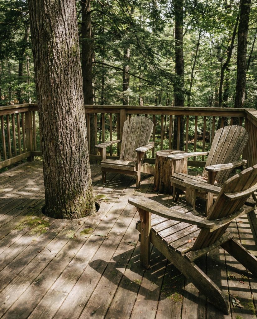 Practical insight: When you cut a hole for a tree, leave at least 4-6 inches of clearance around the trunk—trees grow, and you don’t want the deck to strangle it or create a maintenance nightmare as the trunk expands. Use a flexible rubber collar to close the gap and keep debris from falling underneath. Also, be prepared for leaf cleanup; wooded decks require more sweeping and occasional pressure washing to prevent moss and algae buildup on shaded boards.