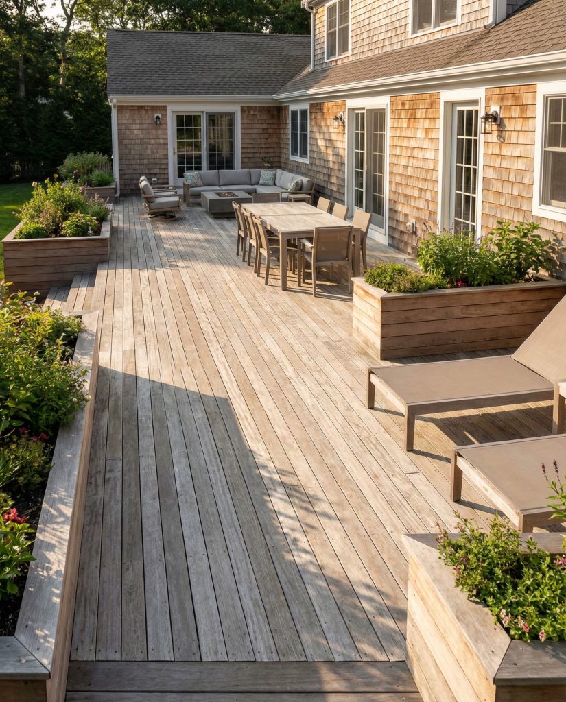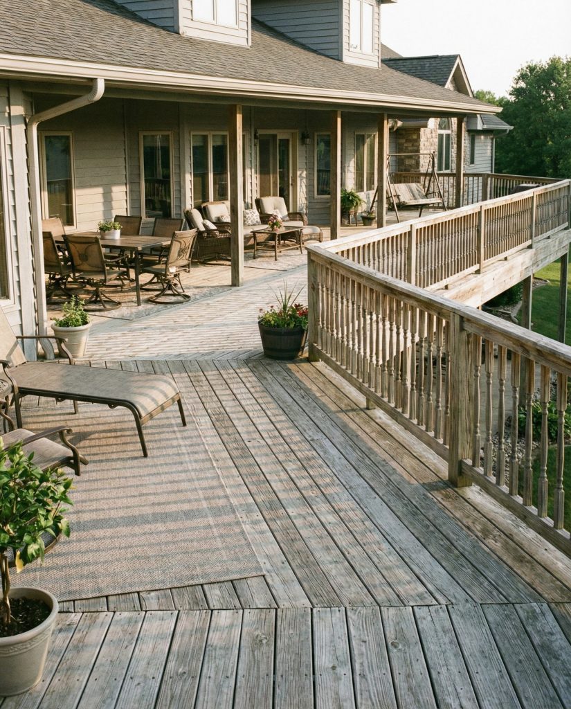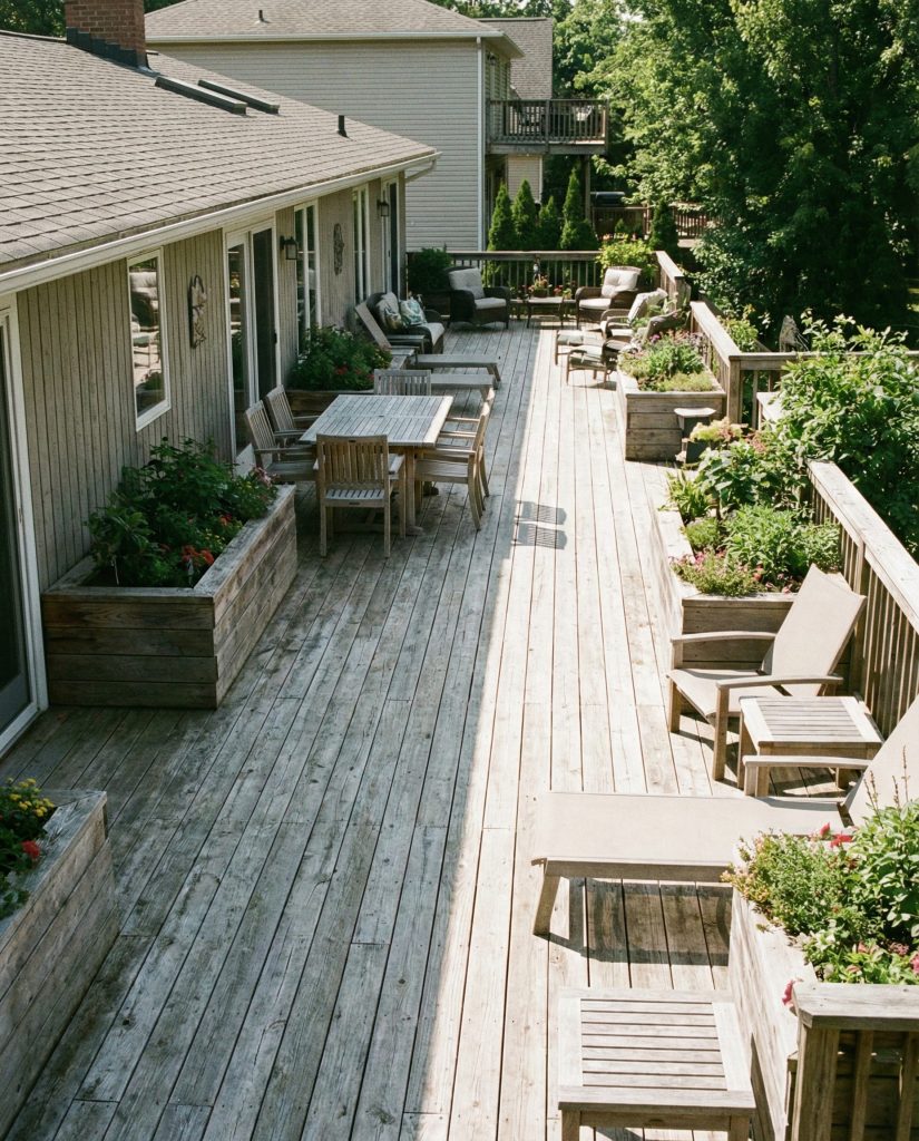 Common mistake: Building too narrow. A long deck needs to be at least 12 feet deep to feel functional—any less and furniture feels crammed against the house with no room to walk behind it. Many DIYers go 10 feet to save materials, then regret it when they can’t pull chairs out from the table without blocking the path. Aim for 14-16 feet if budget allows; the extra width transforms usability, especially if you plan to add a grill or bar cart.