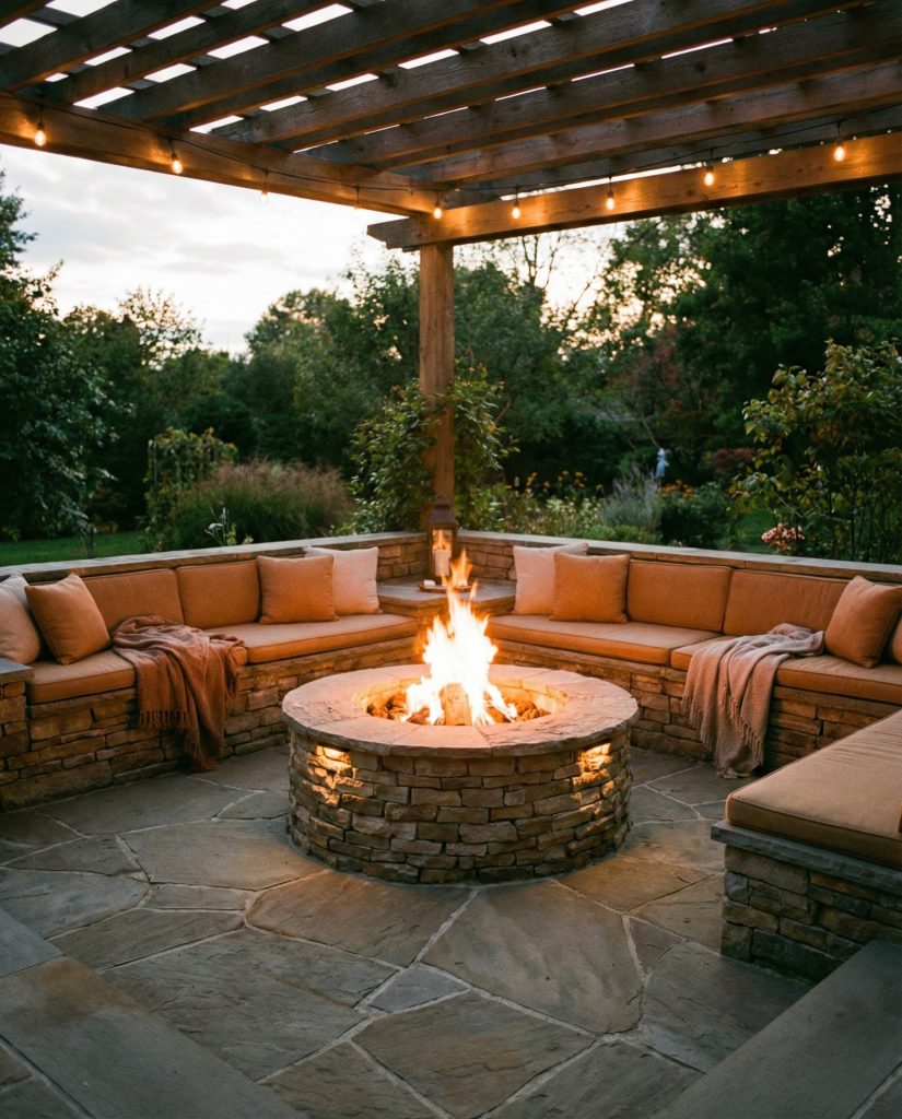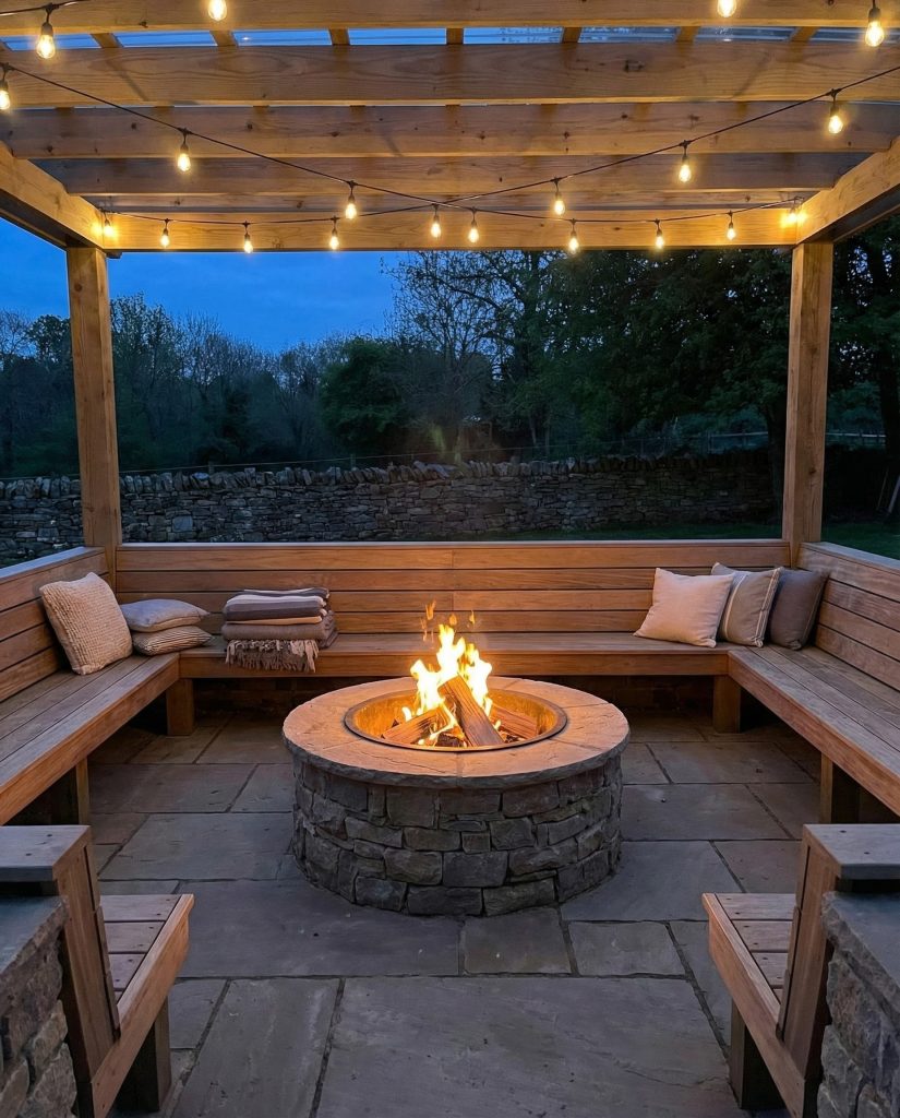 A sunken section of deck—even just 12-16 inches lower than the main level—creates an intimate gathering spot that feels like a cozy pit (pun intended). This is especially effective when centered around a fire feature. The lowered floor makes conversation easier because everyone’s seated at a more equal height, and it visually separates the fire zone from the dining or cooking areas. Built-in seating around the perimeter completes the circle and eliminates the need for dragging chairs around.