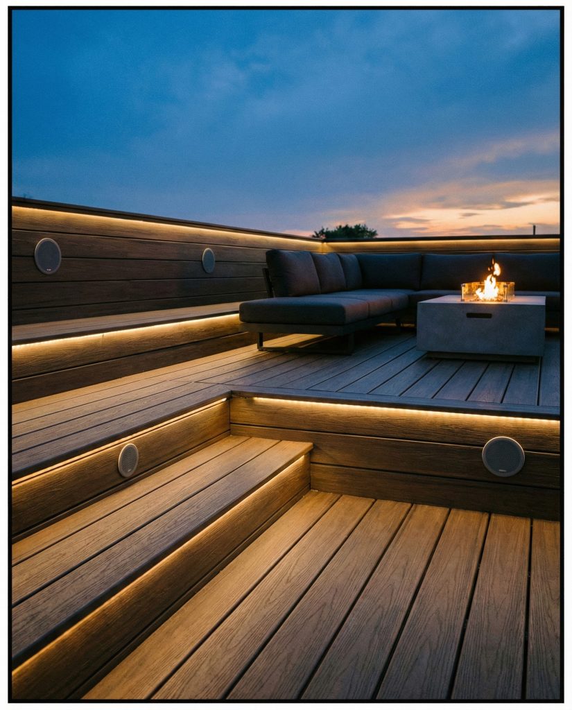 Expert commentary: Run extra electrical conduit during the build even if you’re not installing tech immediately—future-proofing costs pennies now versus hundreds later to add wiring. Low-voltage LED systems are DIY-friendly and energy-efficient; a whole deck can run on less power than a couple of lightbulbs. Motion-activated lights near stairs prevent nighttime tumbles, and dimmable ambiance lighting lets you adjust the mood for dinner parties versus casual evenings. The technology enhances the experience without overwhelming it—when done right, it’s invisible until you need it.