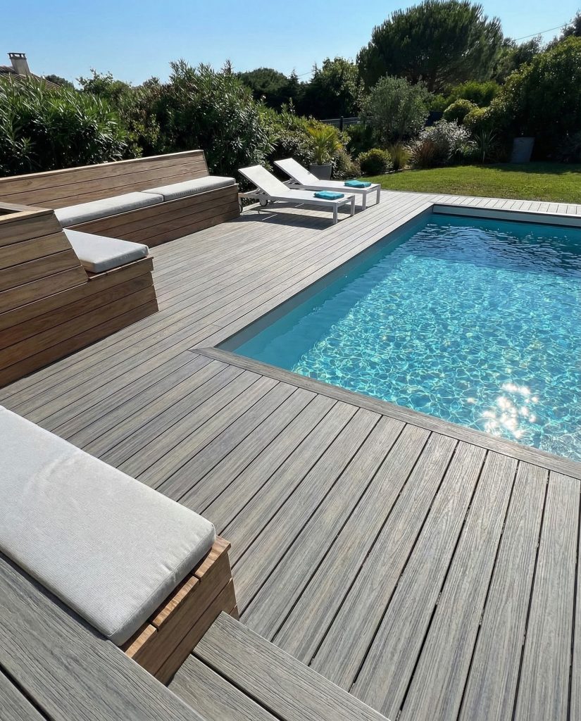 Practical insight: Leave at least 4 feet of deck space on all sides of the pool for safe passage. If you have a diving board or slide, allocate even more room. Many pool owners overlook drainage—make sure your decking has a slight slope away from the pool so rainwater doesn’t puddle. Adding wide steps into the pool not only looks luxurious but also provides a safe entry point for kids and older family members.