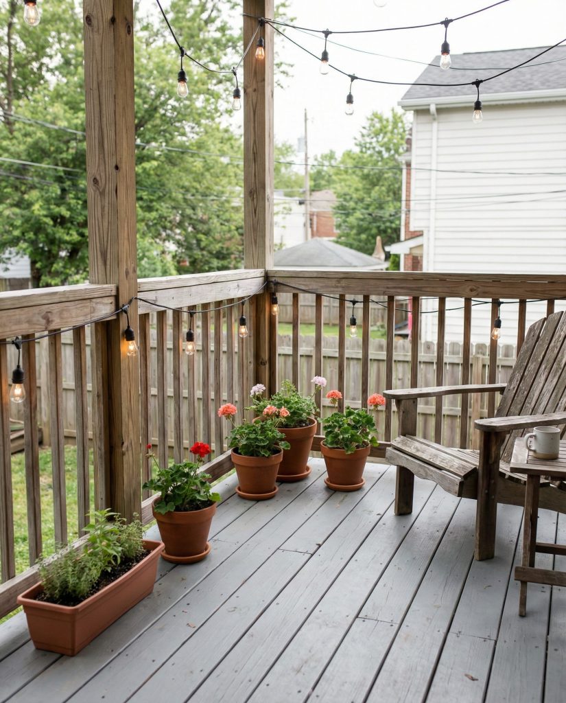 Even a tiny deck—maybe just 6×6 feet—can change your quality of life if you’re in a small home or apartment with a sliver of outdoor access. Think of it as a balcony you built yourself. One folding bistro chair, a potted herb garden, and some solar lanterns turn this micro-space into your morning sanctuary or evening wind-down spot. The key is choosing furniture that doesn’t overwhelm the space and leaning into vertical elements like trellises or wall-mounted planters to add greenery without stealing floor space.