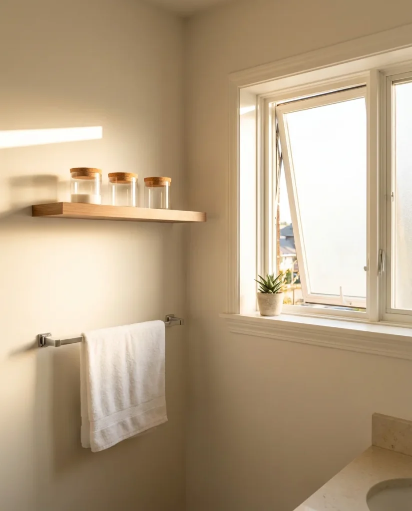 The practical side of open shelving is that it forces you to keep only what you’re comfortable displaying—which is a surprisingly effective editing tool. When everything is visible, you stop accumulating things “just in case” and start being more selective about what lives in the bathroom at all. Over time, people who commit to open shelving often report that their overall bathroom organization improves because the visibility creates a natural accountability for clutter.
