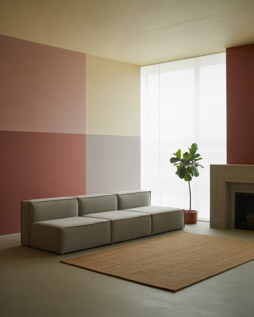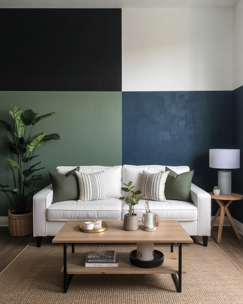 Instead of one shade, use ideas paint with large blocks of two or more colors. For example, blue paired with muted neutrals, or green alongside black. This playful style highlights architecture while giving flexibility for matching decor.