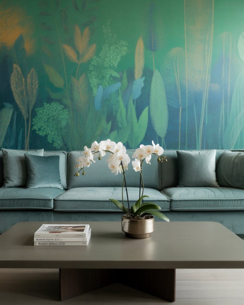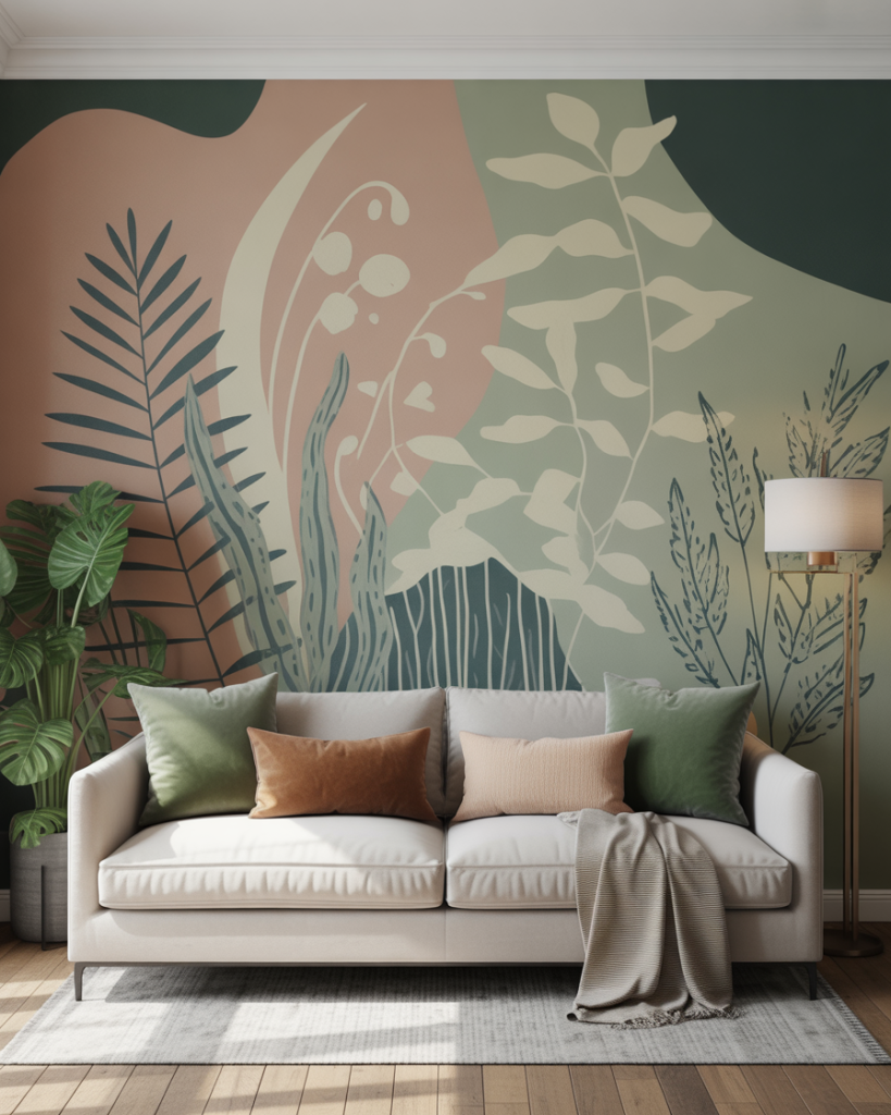 For a bold and personal choice, hand-painted or custom mural walls are making waves in 2025. Whether abstract, botanical, or cityscape-inspired, a mural transforms the wall into art itself. This approach is perfect for families wanting a unique backdrop behind a couch or TV.