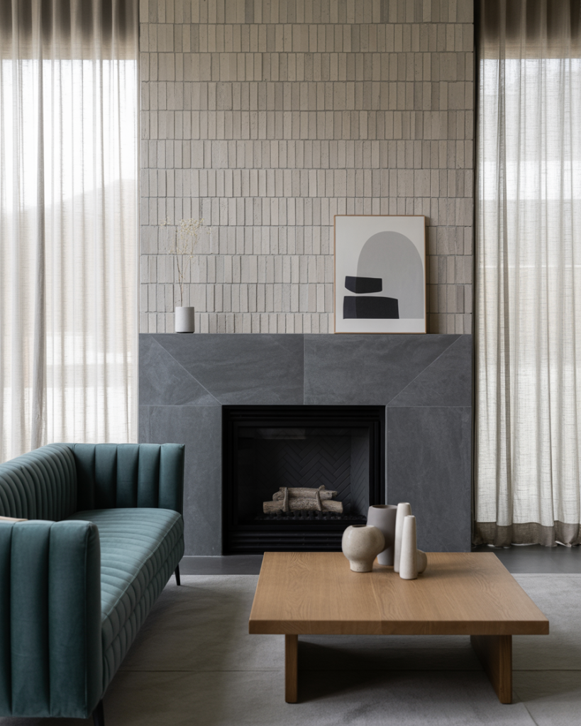 Large-format tiles or patterned ceramic designs make durable, eye-catching accent walls. Especially effective around a fireplace, tiles offer endless ideas from Mediterranean motifs to sleek modern finishes.