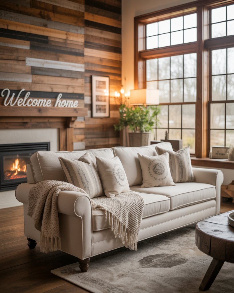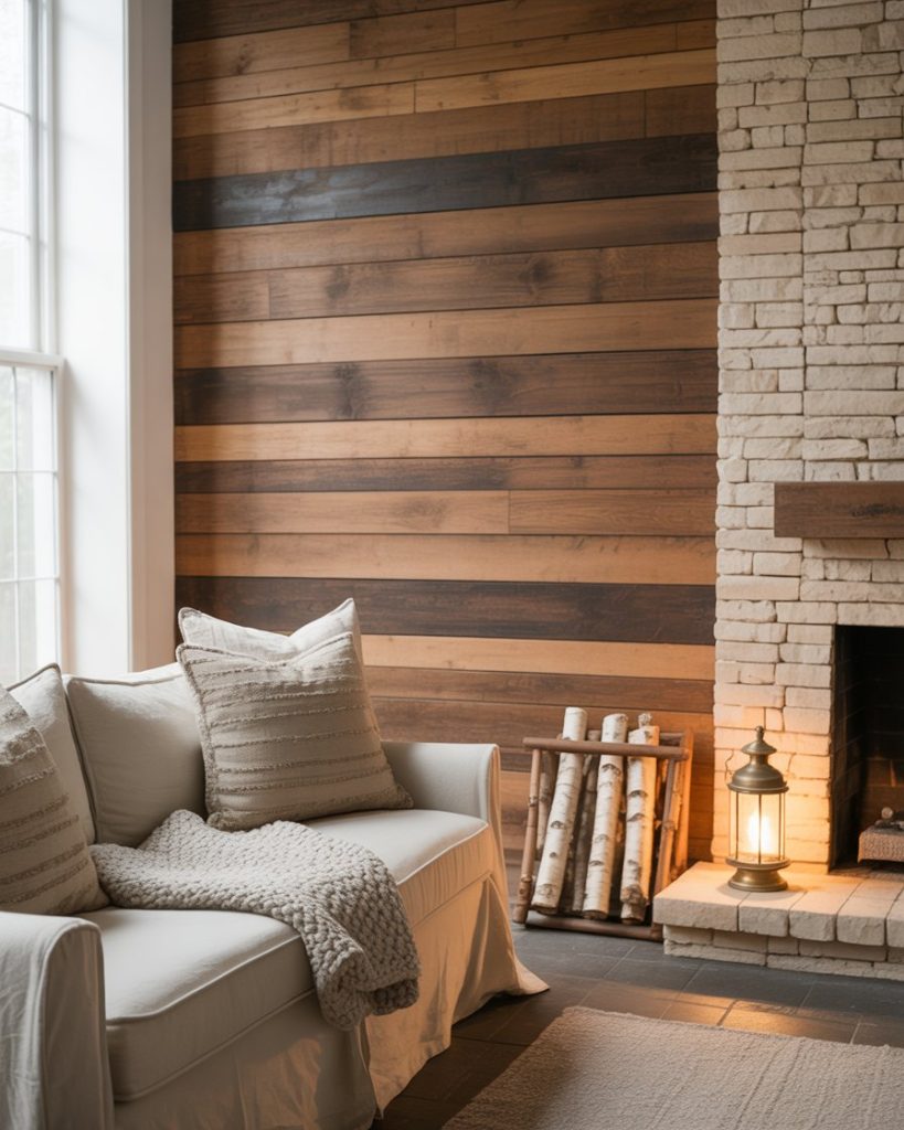 For lovers of farmhouse charm, wood accent walls remain a favorite. Shiplap, reclaimed planks, or polished boards bring warmth and character. Combined with a fireplace, neutral colors, and layered textiles, the effect is cozy yet chic. Many homeowners share that wood accents remind them of family cabins, adding personal history in a modern way.