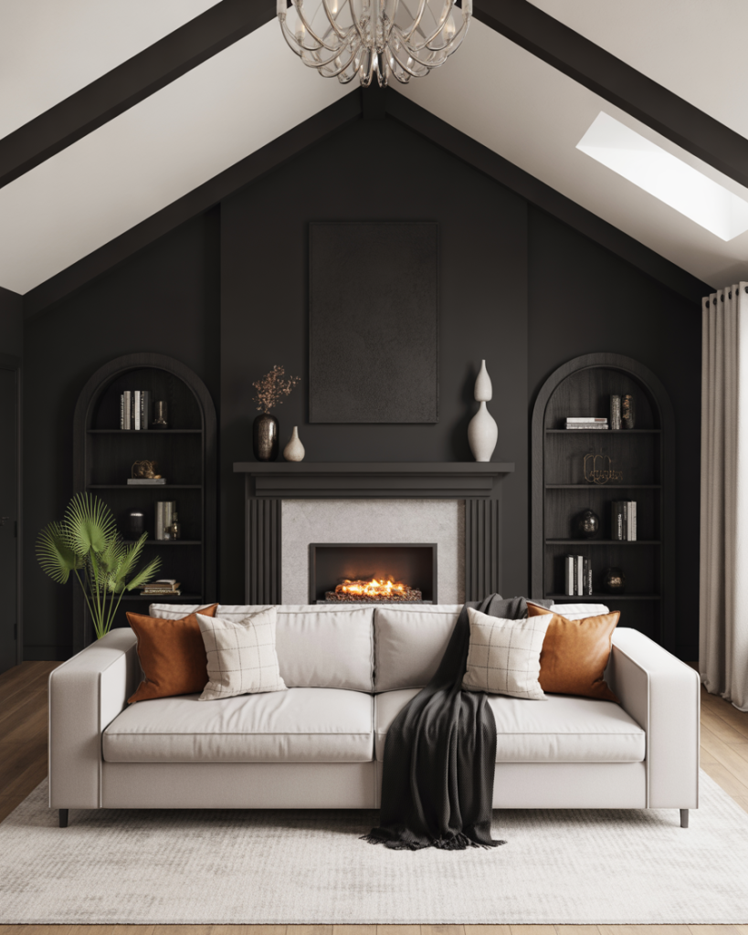 A bold black accent wall delivers drama and elegance, especially in rooms with high ceiling or vaulted ceilings. The darkness creates a striking contrast when paired with lighter furniture or metallic decor, making the wall an instant showpiece. In 2025, designers are embracing black as a symbol of sophistication rather than austerity.