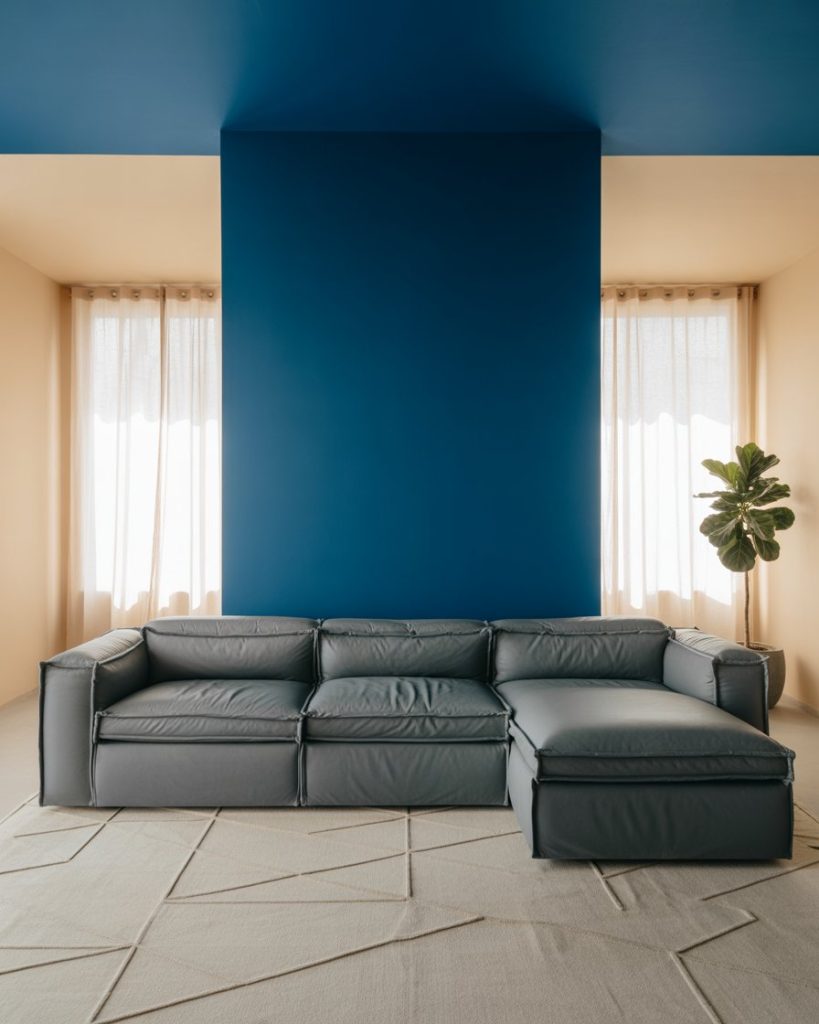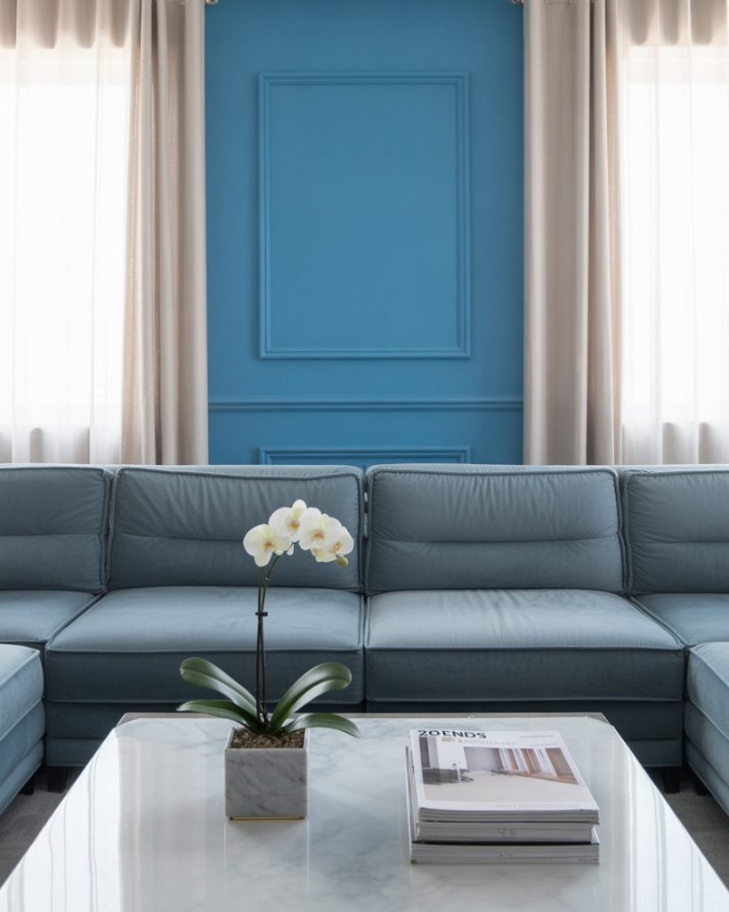 Shades of blue continue to dominate accent wall ideas because of their versatility. Deep navy and teal provide sophistication, while lighter hues create a coastal, airy effect. Designers recommend pairing a blue wall with two softer shades on adjacent walls, ensuring balance and harmony. It’s an elegant backdrop for a family couch or entertainment setup.