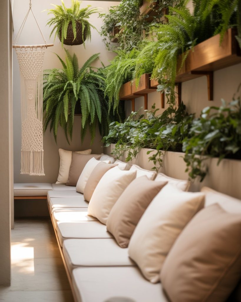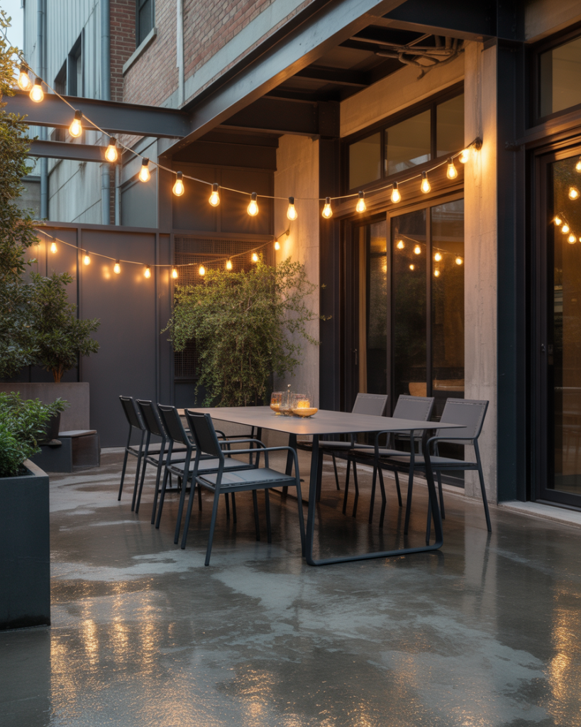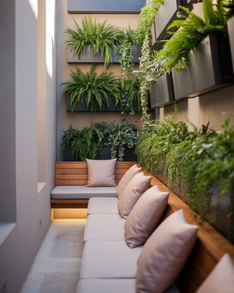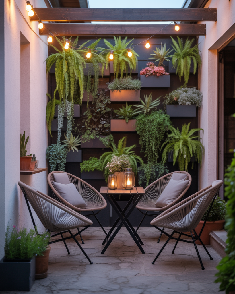 Even a narrow patio can feel open and stylish. Use built-in benches, vertical décor, and mirrors to visually expand space. For a budget DIY outdoor area, this is both clever and cost-effective. Designer Sarah Sherman Samuel often says that good design is less about size and more about smart use of form.