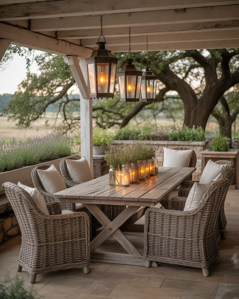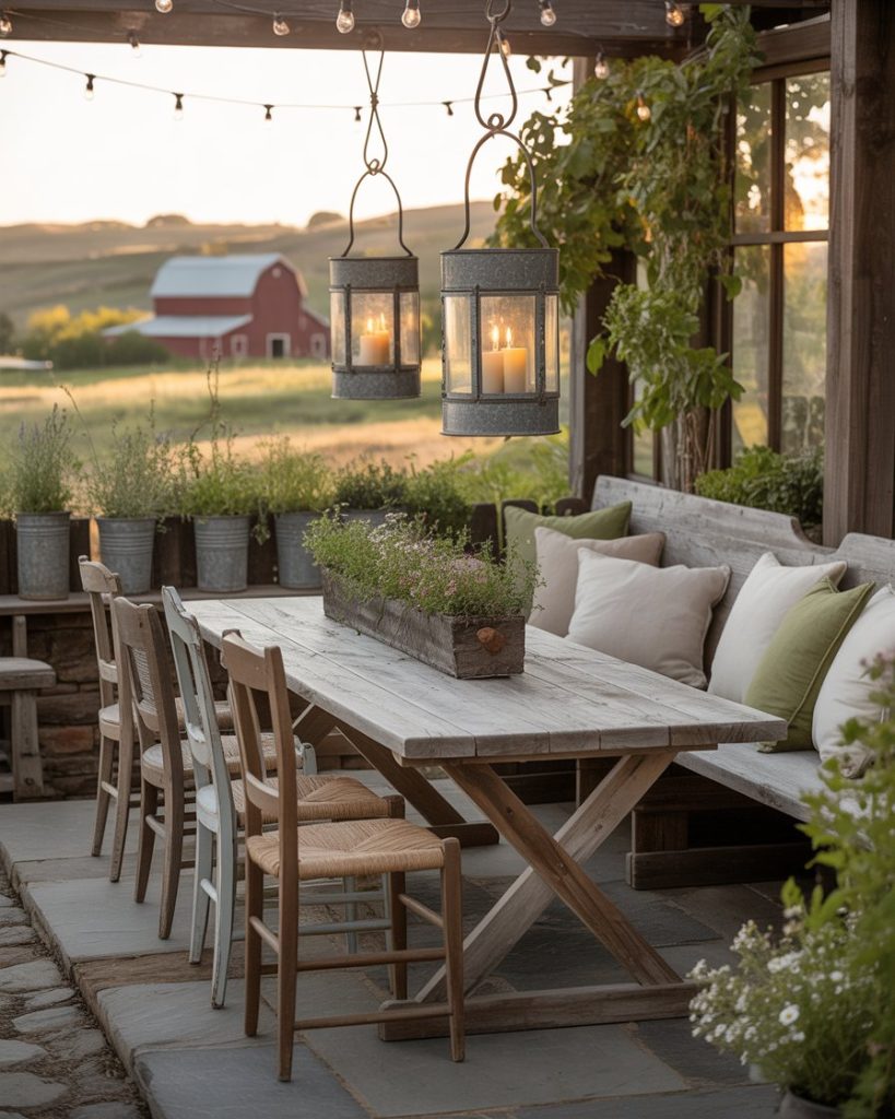 Bring countryside warmth to your patio with a budget DIY outdoor areas project inspired by the farmhouse style. Think distressed wood tables, galvanized metal accents, and vintage lanterns. Even in small spaces, this look feels inviting. Joanna Gaines often says that comfort is built from imperfections—mix and match textures for authentic charm.