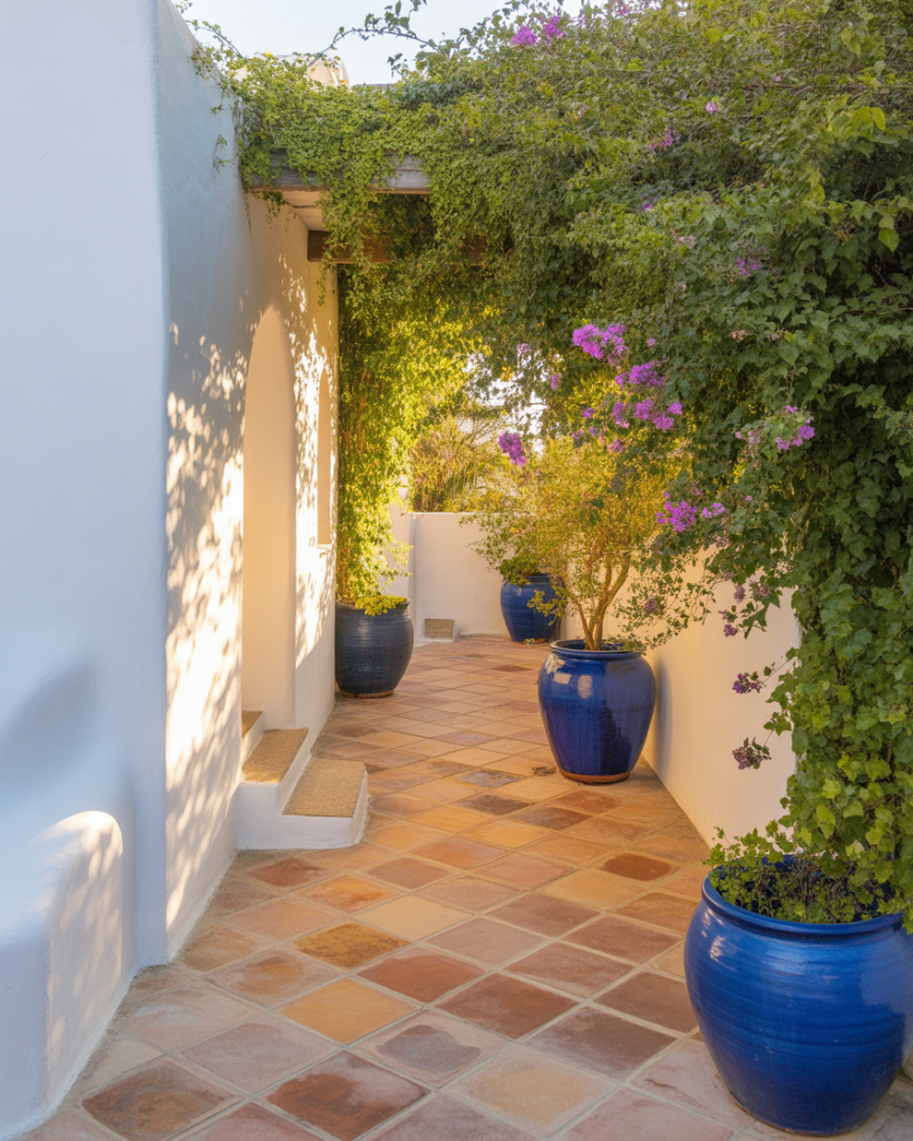 Capture coastal romance with a covered Mediterranean-inspired patio. Use whitewashed walls, blue pottery, and terracotta tiles. Perfect for a budget, this design feels like a getaway at home. Add olive trees or climbing vines for authenticity. Designer Amber Lewis praises this timeless, sun-washed aesthetic for its relaxed yet refined character.