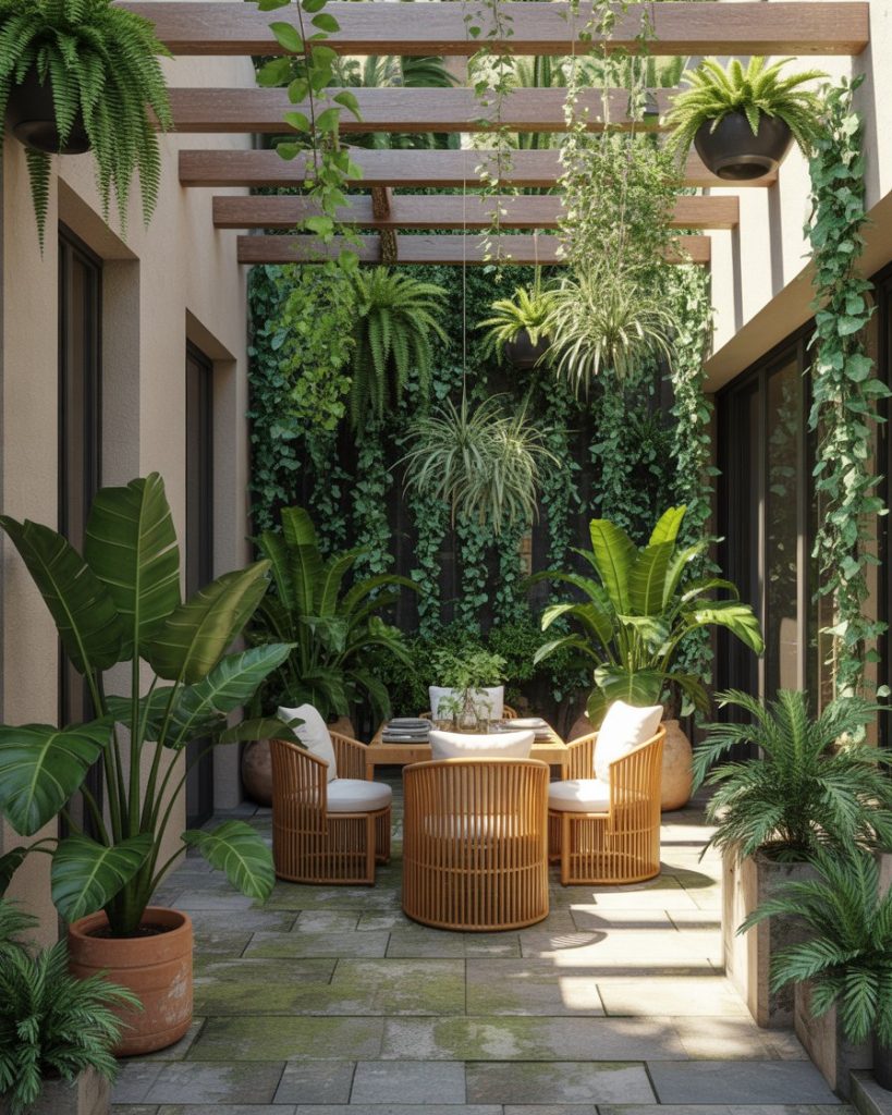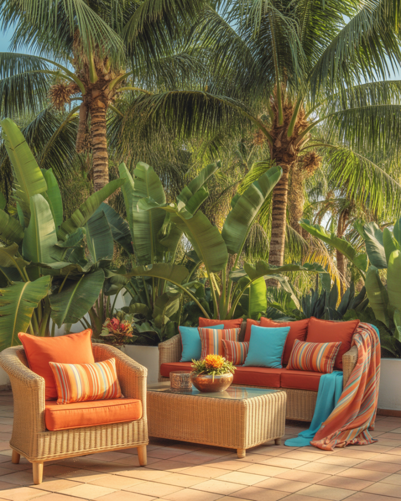Turn your backyard into a paradise with lush palms, woven chairs, and a splash of color. Even on a budget, you can achieve tropical luxury using a budget paver base and bold textiles. Great for large yards or pool areas, this setup feels like a vacation every weekend.