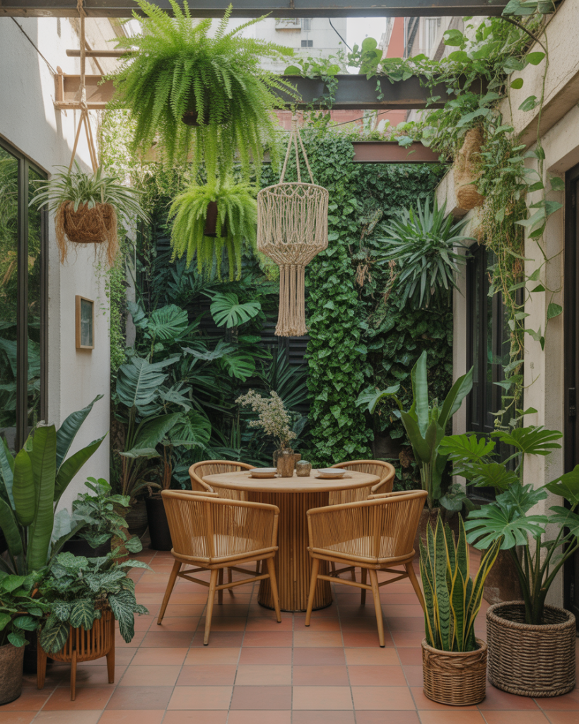 Transform small covered patios or apartment balconies into green escapes. Use vertical gardens, hanging ferns, and bamboo furniture. This cozy, plant-filled space purifies air and soothes the soul. For a budget DIY deck decoration, reuse pots or wooden crates. Urban jungles prove that nature thrives even in tiny spaces.