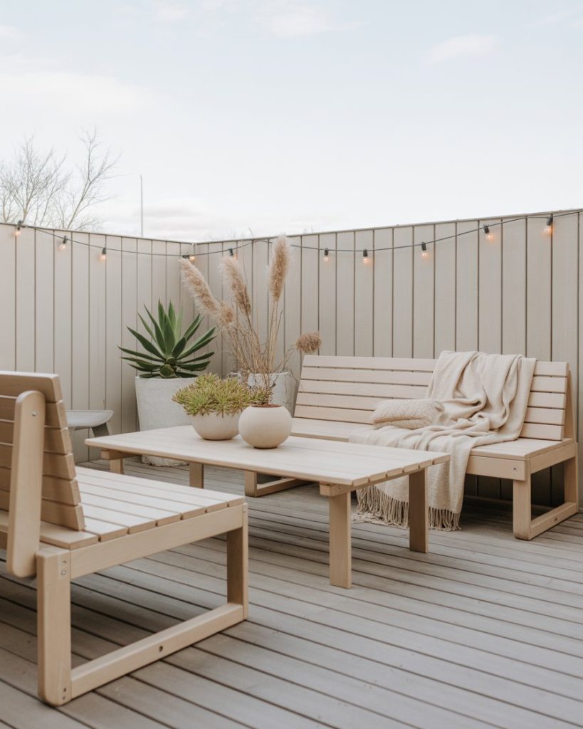 Scandinavian patios focus on light, comfort, and simple beauty. Use pale wood, soft fabrics, and candles for hygge charm. Perfect for small spaces or narrow patios, it’s both functional and tranquil. Stick to white and gray tones for clean aesthetics. Interior expert Shea McGee notes how minimal design fosters true relaxation.