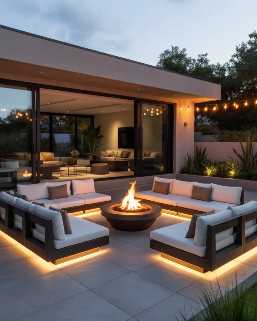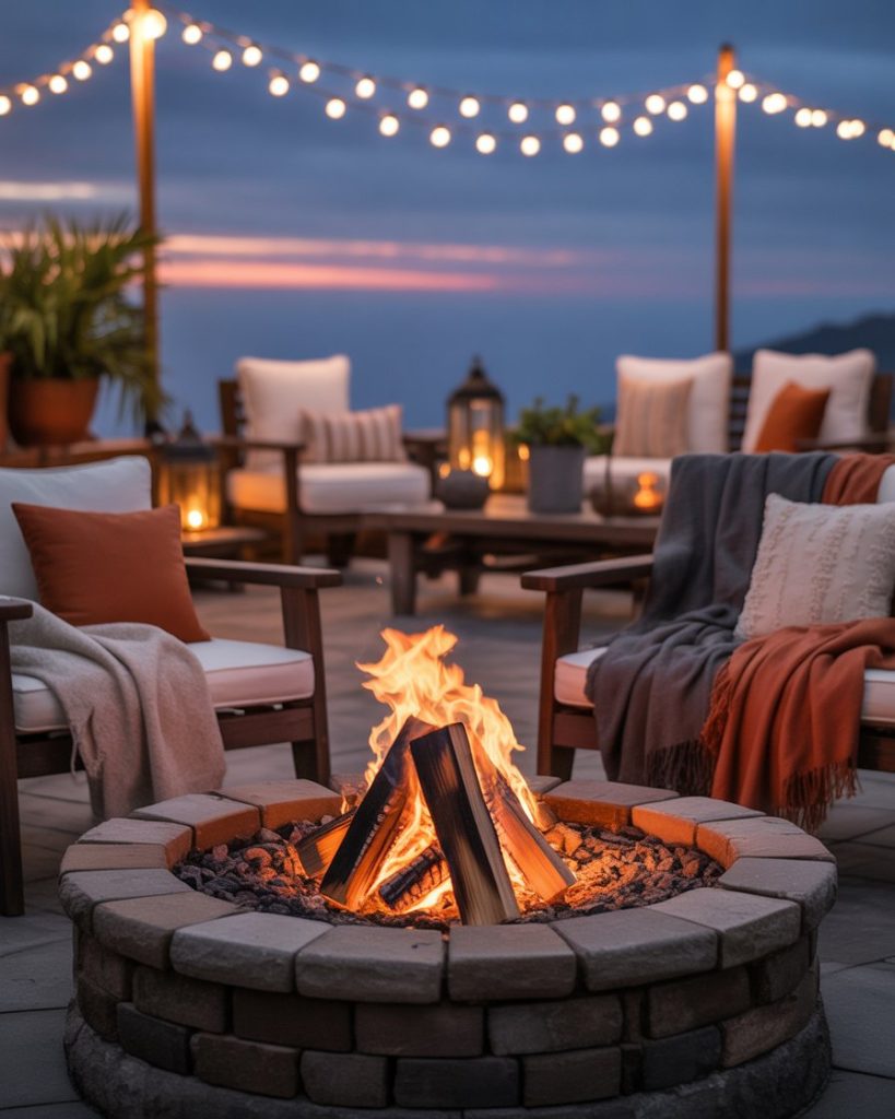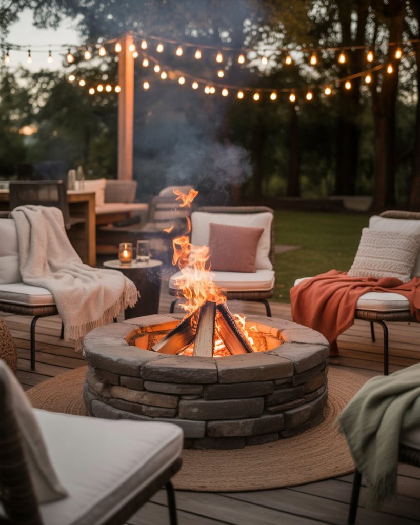 A covered or open patio with a fire pit invites warmth and connection. Build one from a budget DIY outdoor areas concept using stone or concrete blocks. Add chairs, throws, and maybe a few marshmallows for the perfect evening. Firelight creates an atmosphere money can’t buy—cozy, social, and timeless.