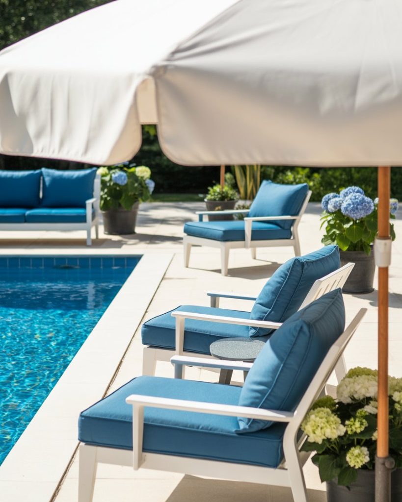 If you have a pool, let your patio echo its freshness. Even with cheap upgrades like umbrellas or fabric changes, the result feels luxurious. Add symmetry and soft seating for that resort feel. Designer Nate Berkus emphasizes how balance between water and décor enhances relaxation and flow.