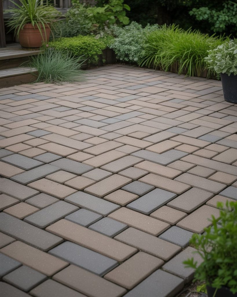 Using budget pavers is a smart way to improve a patio. Geometric layouts can be combined with gravel or moss for contrast. It’s sturdy, simple, and inexpensive. Bob Vila and other home experts suggest pavers for their elegant finish as well as the ease of DIY installation.