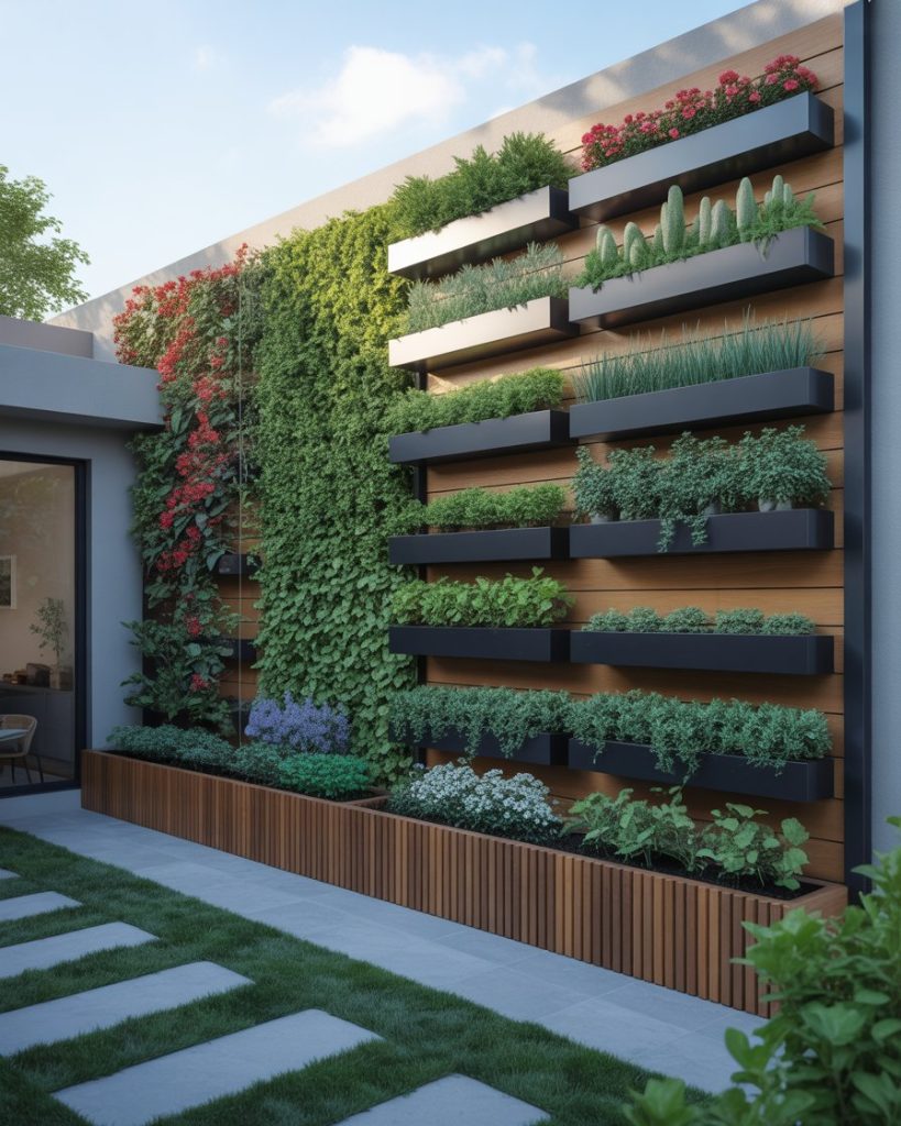 In 2026, vertical gardens are one of the most popular modern designs for compact yards. These walls can host herbs, flowers, or even small fruit trees, making them both practical and beautiful. They’re low maintenance, especially when combined with drip irrigation systems, and they save space for seating or play areas. This simple approach works in cities like California suburbs where backyards are shrinking but style is still a priority.