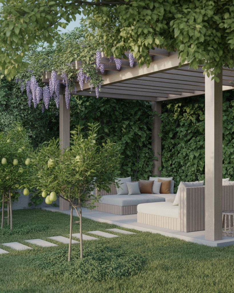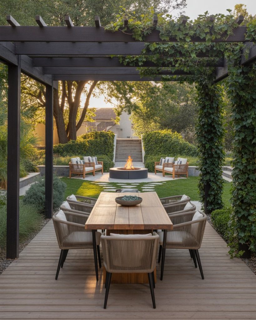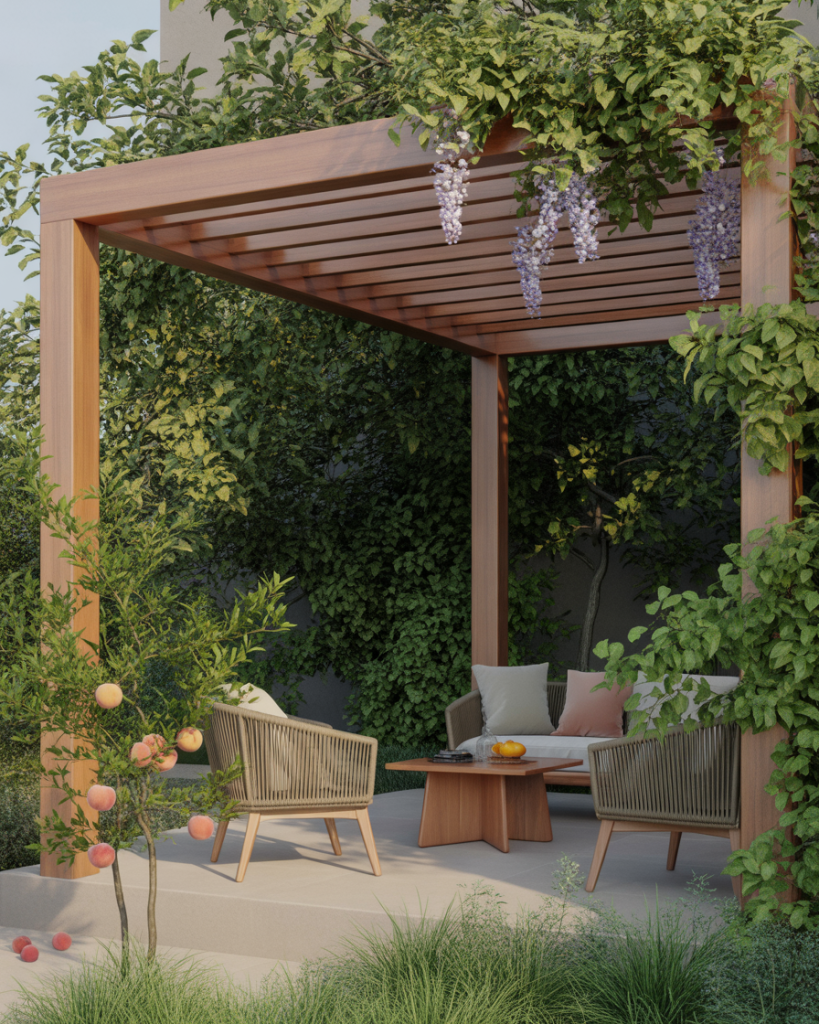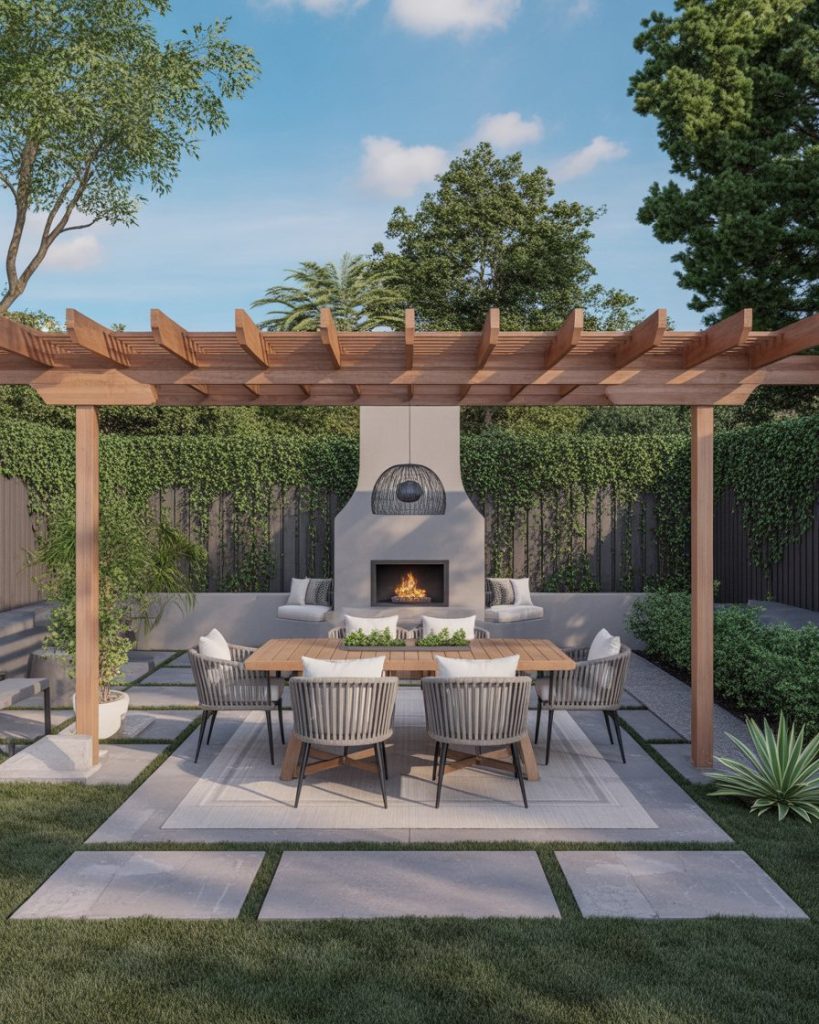 In hot climates like Arizona and California, pergola lounges are essential in 2026. Built with contemporary wood designs, they provide easy shade and a stylish place to relax. Pair with climbing plants, fruit trees, or even hanging lighting for evenings outdoors. This low maintenance idea keeps you cool while adding a sense of structure and elegance to the yard.