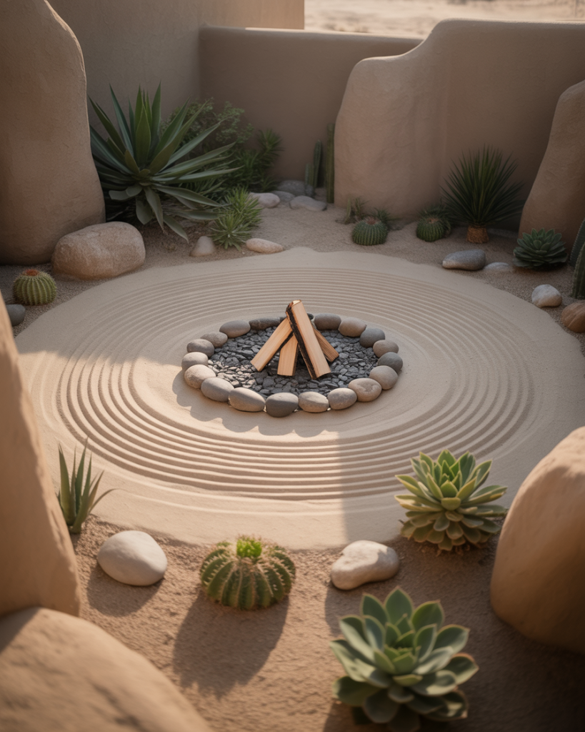 Merging desert landscaping with Zen minimalism is one of the boldest designs in 2026. Using sand, rocks, and drought-resistant plants, homeowners are creating serene spaces that require very little upkeep. This works well for Arizona and California climates where water-saving is key. Adding a few benches or a small firepit creates a contemporary yet spiritual retreat that is easy to maintain and perfectly suited for meditation.