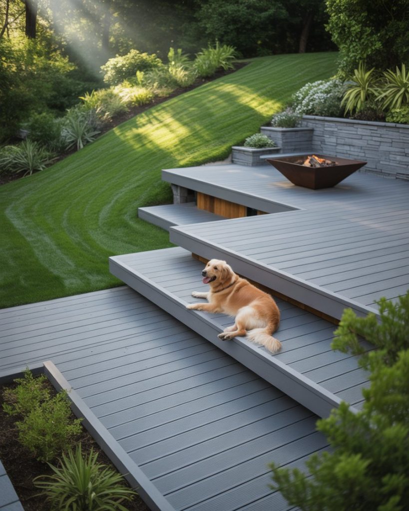 Multi-level decks are becoming a big feature in 2026 for sloped or large yards. These designs layout create defined zones: one level for dining, one for lounging, and another for kids or pets. With dog friendly flooring and natural finishes, decks feel like an extension of the house. They are DIY friendly for handy homeowners and adaptable to a budget, making them both practical and stylish.