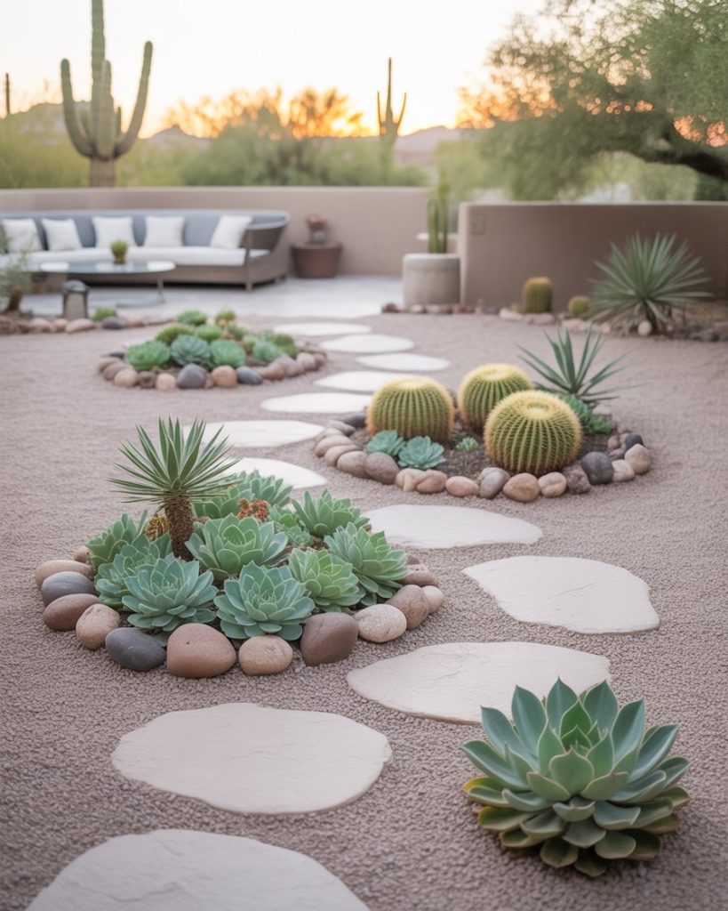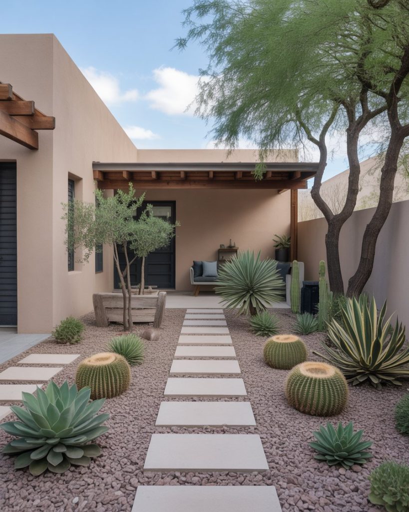 For homeowners in Arizona or dry climates, desert landscaping is becoming a top choice. This style is about low maintenance plantings, gravel designs layout, and hardy succulents that thrive with minimal water. It’s a simple yet striking way to use natural textures, and it’s also more dog friendly because desert plants and stones hold up well to paws. Many in California are turning to desert-style plans to save water while keeping their outdoor spaces looking fresh and stylish.