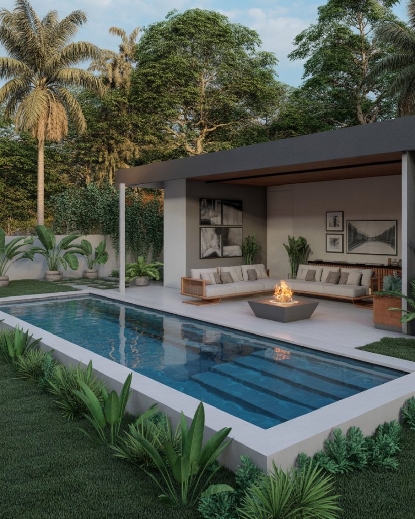 Having a backyard pool has never gone out of style, but in 2026, modern designs focus on integrating water features into the landscape seamlessly. Infinity pools, built-in loungers, and tropical greenery create a resort vibe. Even smaller yards can benefit from plunge pools, which are simple yet stylish. Pairing water with firepit ideas makes for a dramatic contemporary space—bringing balance between elements.