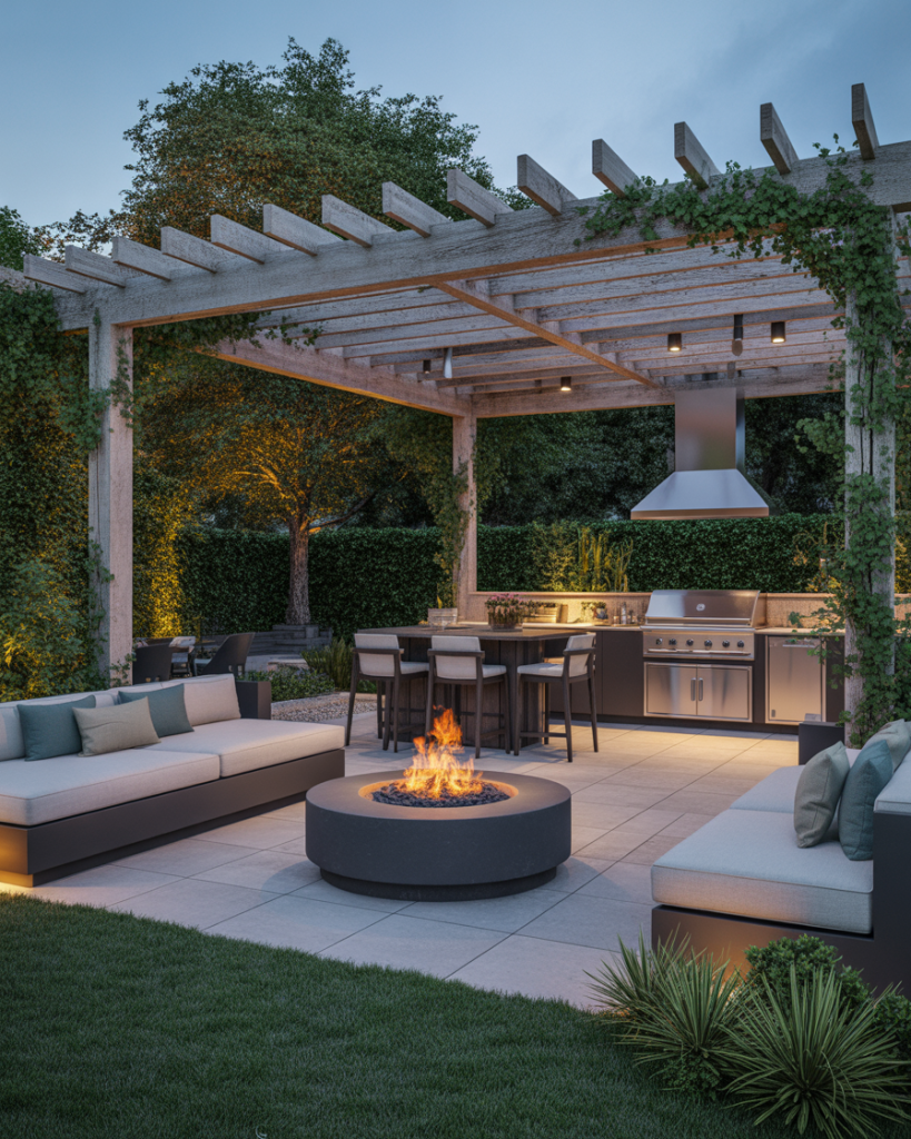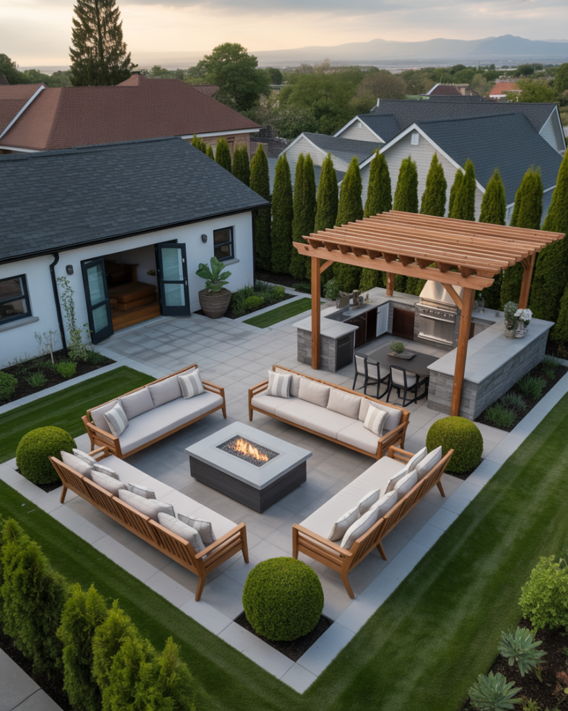 Bigger patios are a must for hosting, and in 2026, large patios are evolving into full entertainment areas. With outdoor kitchens, pergolas, and fire features, they feel like extensions of the home. Modern furniture, cozy firepits, and layered lighting make them usable all year. Whether in sunny California or cooler regions, these patios are proving to be the favorite “room” of the house once summer arrives.