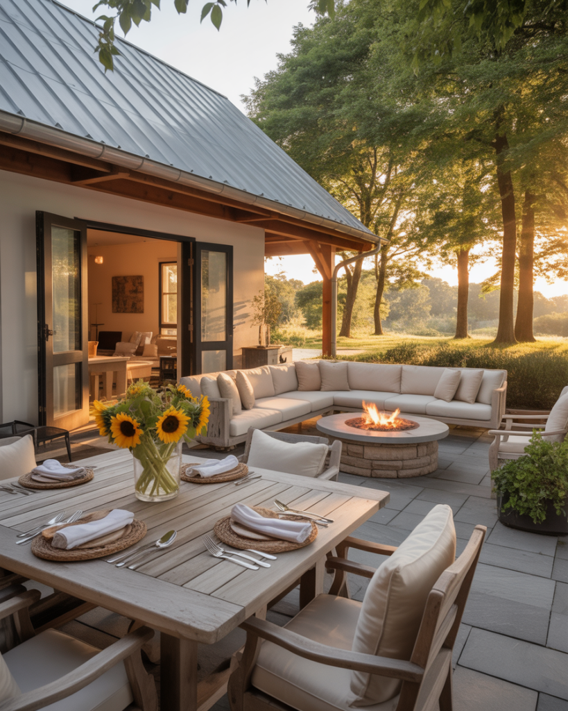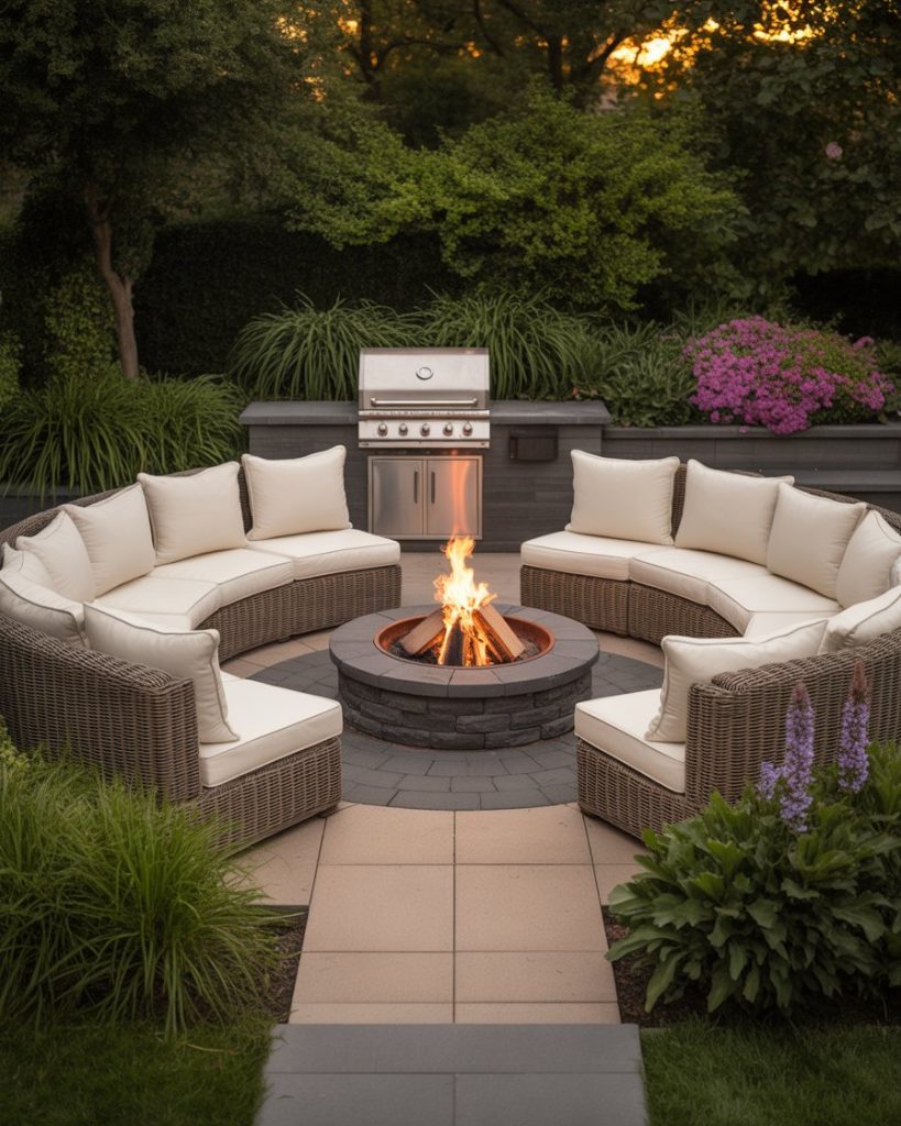 A fire pit patio makes evenings magical. Combined with a thoughtful layout grill area, it becomes the ultimate entertaining hub. Options range from budget DIY projects cheap metal bowls to custom stone builds. My cousin’s backyard fire pit was the highlight of every family night, where stories, music, and roasted marshmallows filled the air.