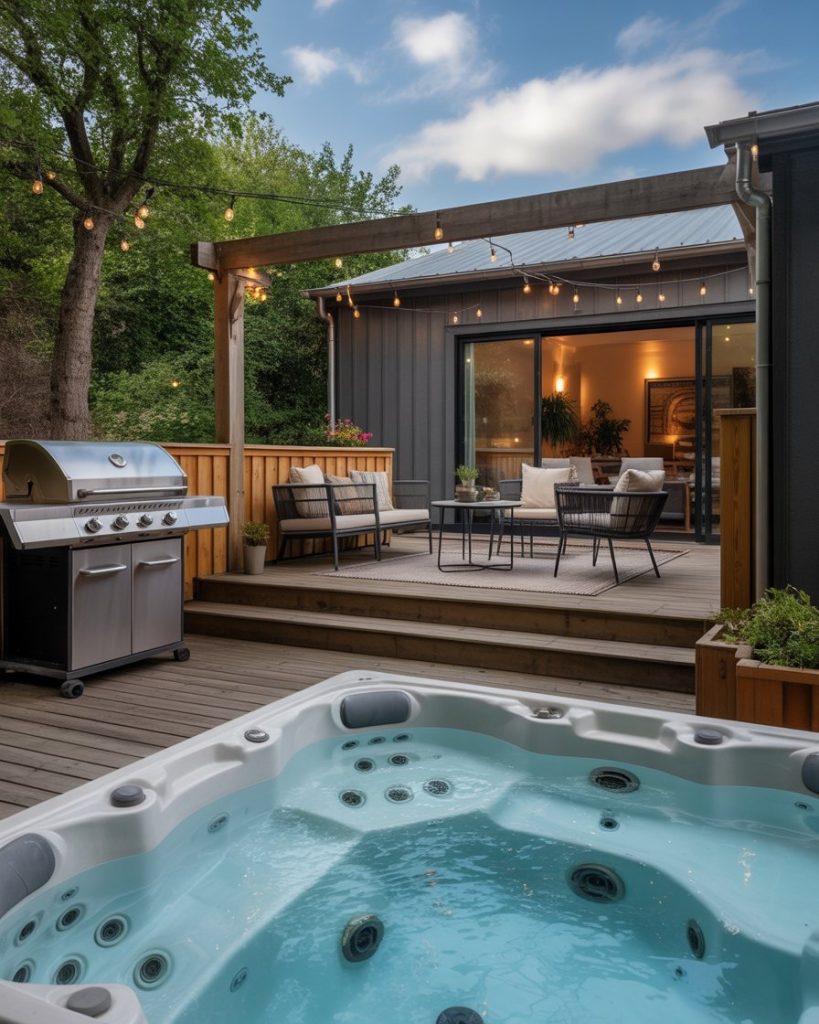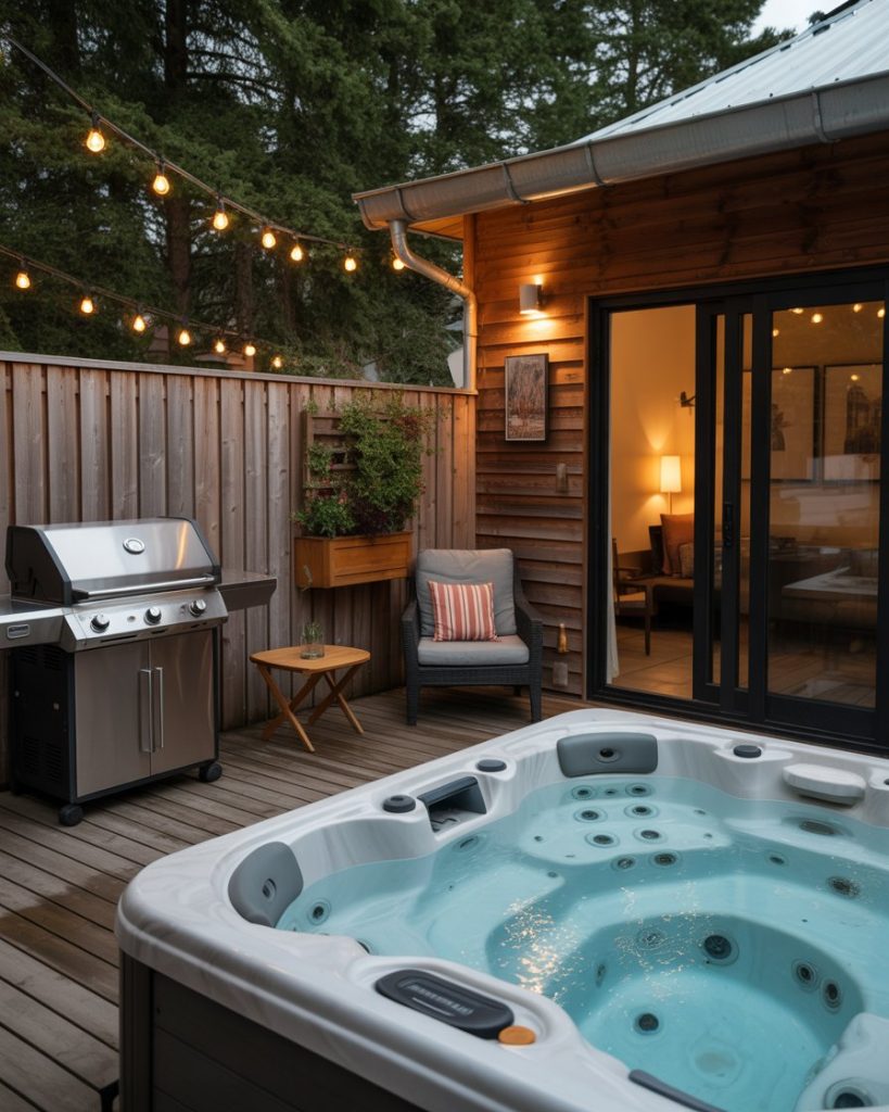 Few things feel as indulgent as a backyard hot tub. Pairing it with a grill or even a mini kitchen creates the dream hot tub and grill setup. With clever budget DIY projects, even smaller yards can enjoy this feature. Friends of mine installed a compact tub surrounded by decking, and it instantly became their go-to spot for unwinding after work.