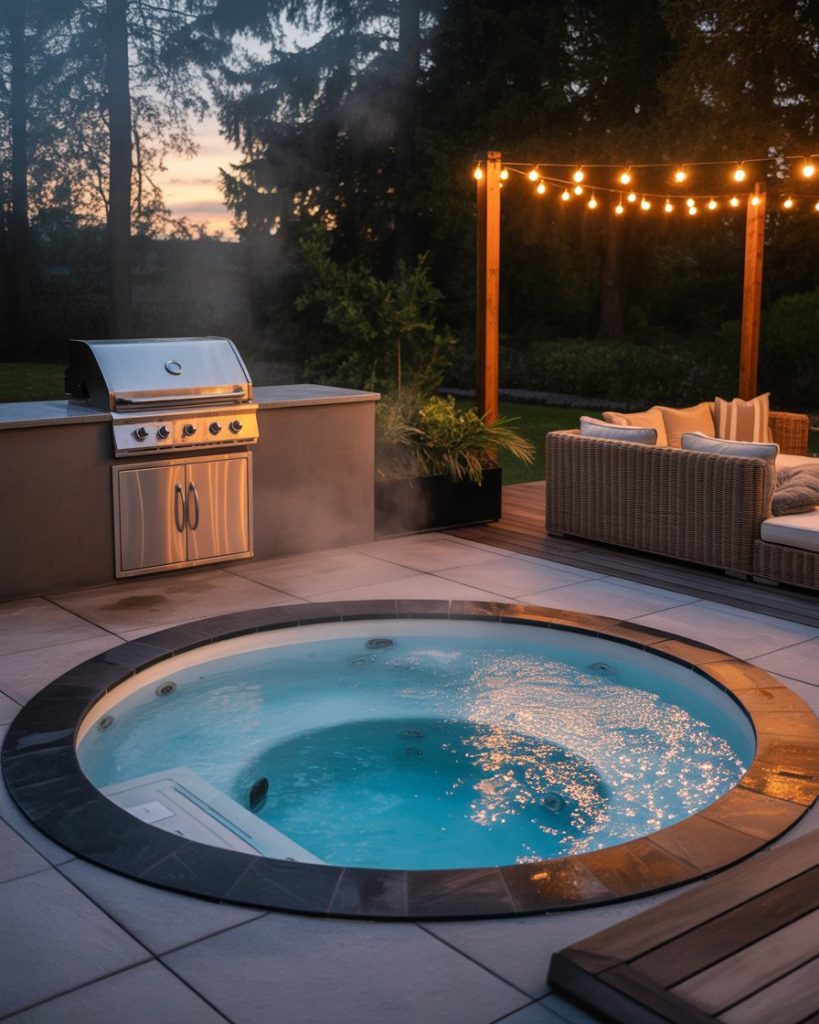 Combining a hot tub and grill makes your backyard feel like a private retreat. With a clever layout, you can keep the cooking zone separate yet nearby, so relaxation and food go hand in hand. A coworker once invited me to their hot tub patio dinner—it felt like a vacation without leaving the neighborhood.
