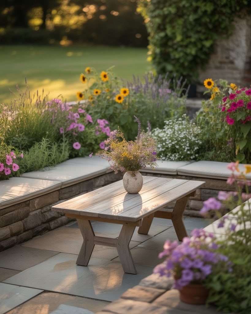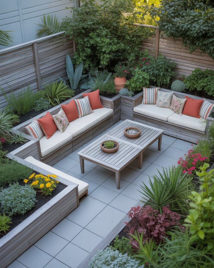 Blending a garden with built-in seating creates a cozy and natural feel. Raised planters can double as seating walls, perfect for budget diy projects cheap. I once saw a patio surrounded by lavender and herbs, and the smell made every seat on the patio feel special.